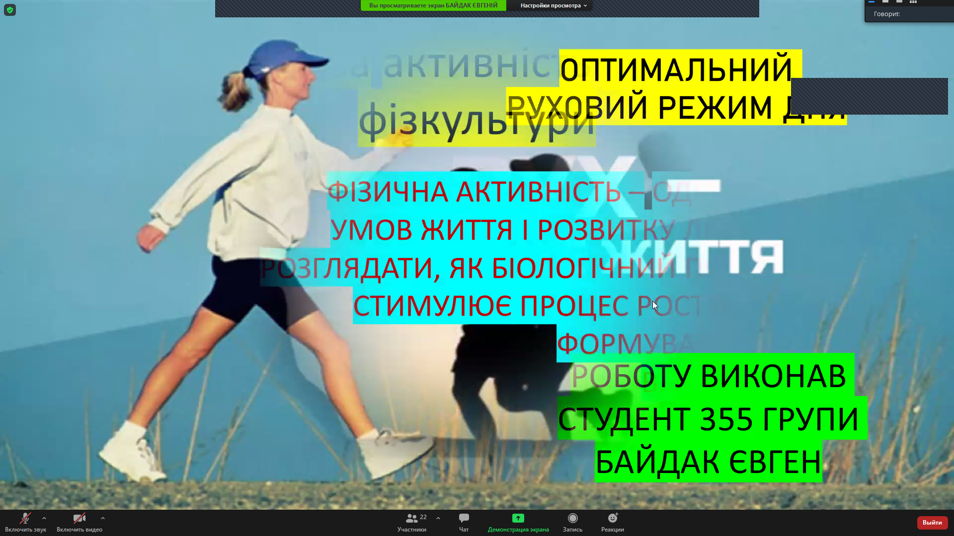 1. ЄВГЕНА БАЙДАКА, студента третього курсу спеціальності «Комп’ютерна інженерія» з доповіддю «Про оптимальний руховий режим студента» (група 355).
