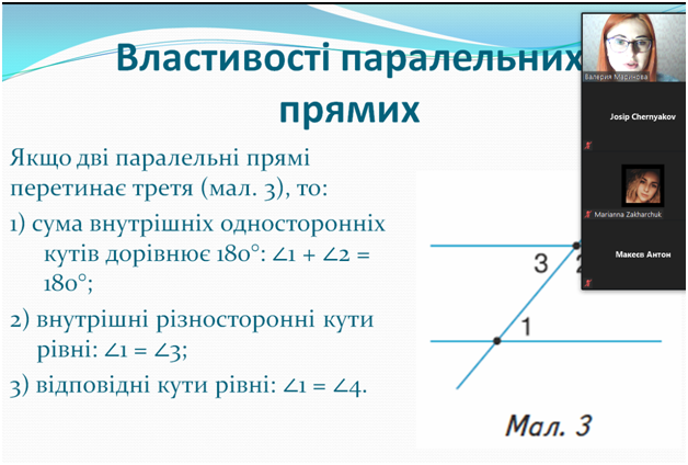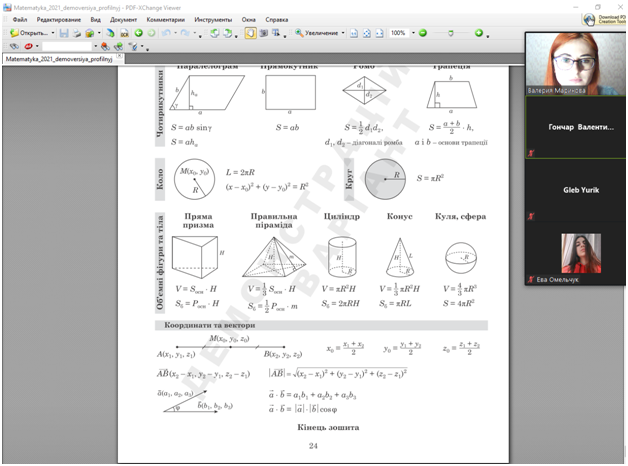У ході онлайн-заходу викладач нагадала студентам, що тест зовнішнього незалежного оцінювання з математики у 2021 році складається із завдань чотирьох форм: завдань з вибором однієї правильної відповіді, завдань на встановлення відповідності, завдань відкритої форми з короткою відповіддю (структуроване та неструктуроване), а також завдань відкритої форми з розгорнутою відповіддю. Загальна кількість завдань тесту з математики – 34, на виконання яких учасникам буде відведено 210 хвилин.