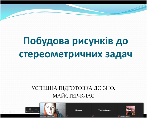 28 січня 2021 року у Відокремленому структурному підрозділі «Фаховому коледжі Миколаївського національного університету імені В.О.Сухомлинського», в рамках циклу додаткових консультацій з підготовки до успішного складання ДПА у форматі зовнішнього незалежного оцінювання знань, відбувся черговий онлайн майстер-клас з математики «Побудова рисунків до стереометричних задач. Підготовка до ЗНО».