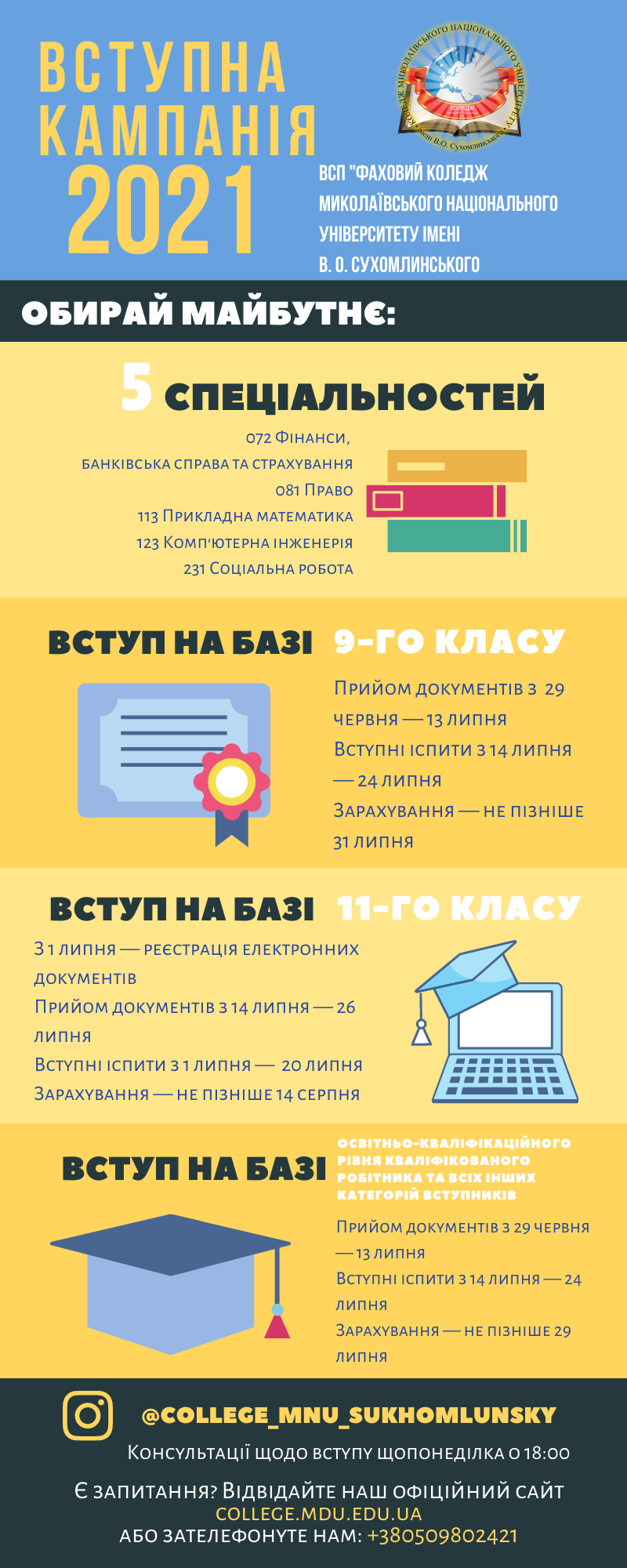 Відокремлений структурний підрозділ «Фаховий коледж Миколаївського національного університету В.О. Сухомлинського» запрошує учнів 9-11 класів загальноосвітніх шкіл, ПТНЗ та всіх бажаючих відвідати День відкритих дверей ONLINE!!!