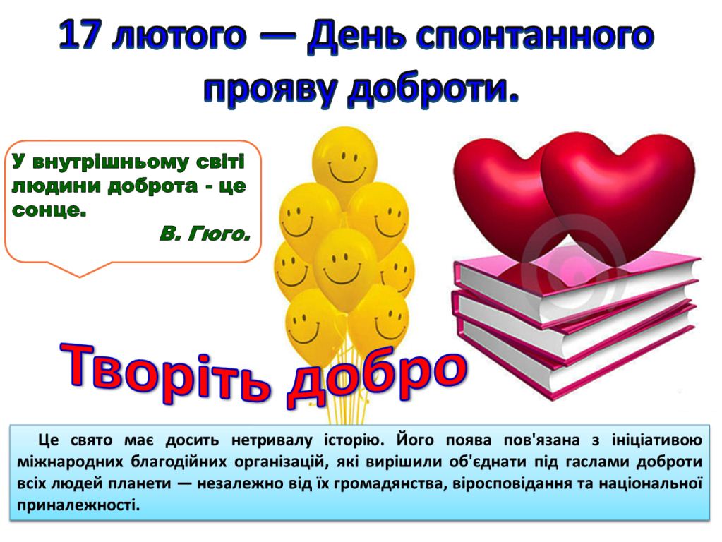 17 лютого у всьому світі відзначають День спонтанного прояву доброти. Вперше його запровадили в американському місті Денвері ще у 1995 році, проте з кожним роком це свято набуває все більшої популярності та заохочує всіх робити спонтанні добрі справи.