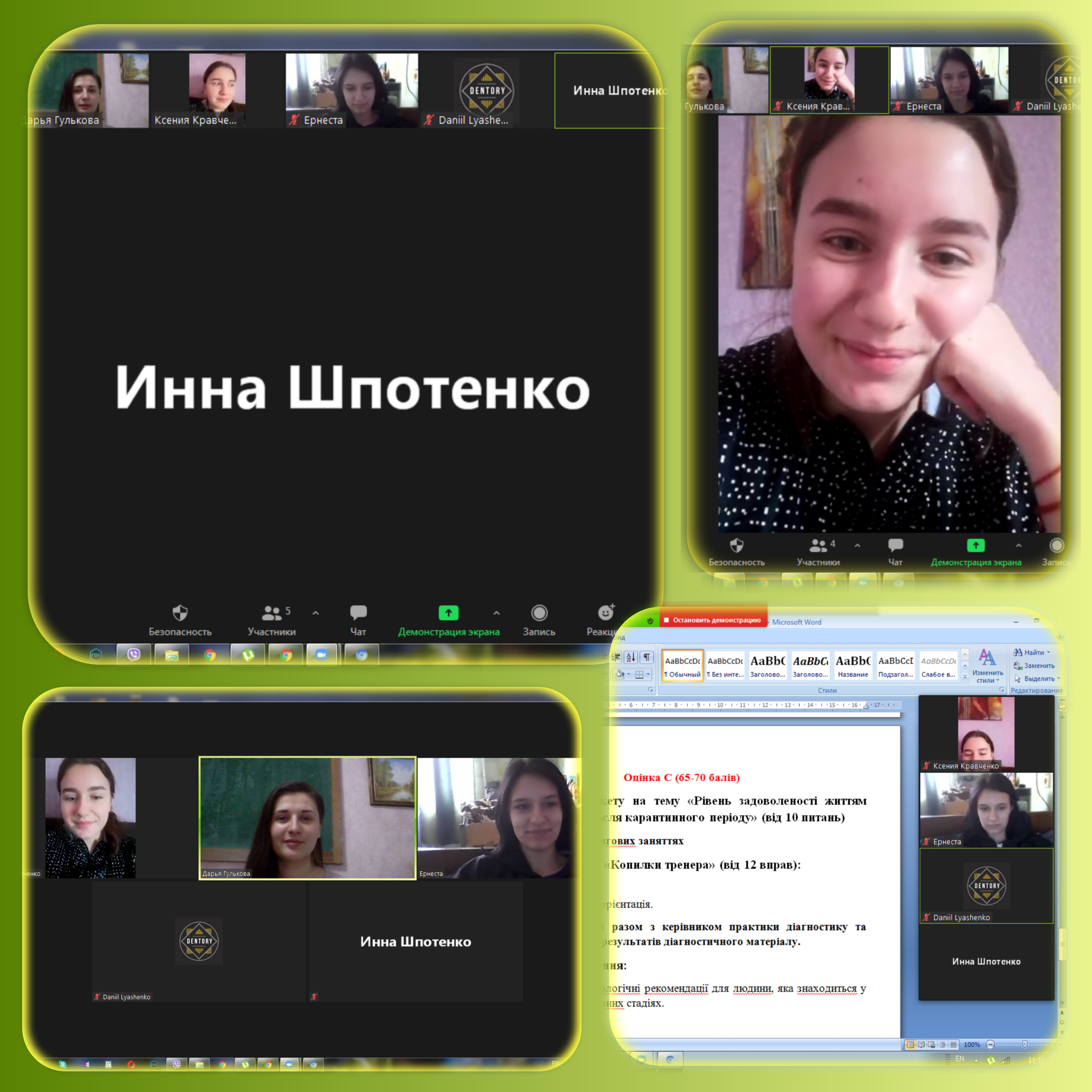 В ході зустрічі зі студентами в режимі онлай від керівника Центру психологічної служби Гулькової Д.С. студенти пркатиканти 2 курсу отримали запроси на проведення тренінгових занять та підготовку до них. Обговорювали теми та напрямки, що цікавлять під час практики.