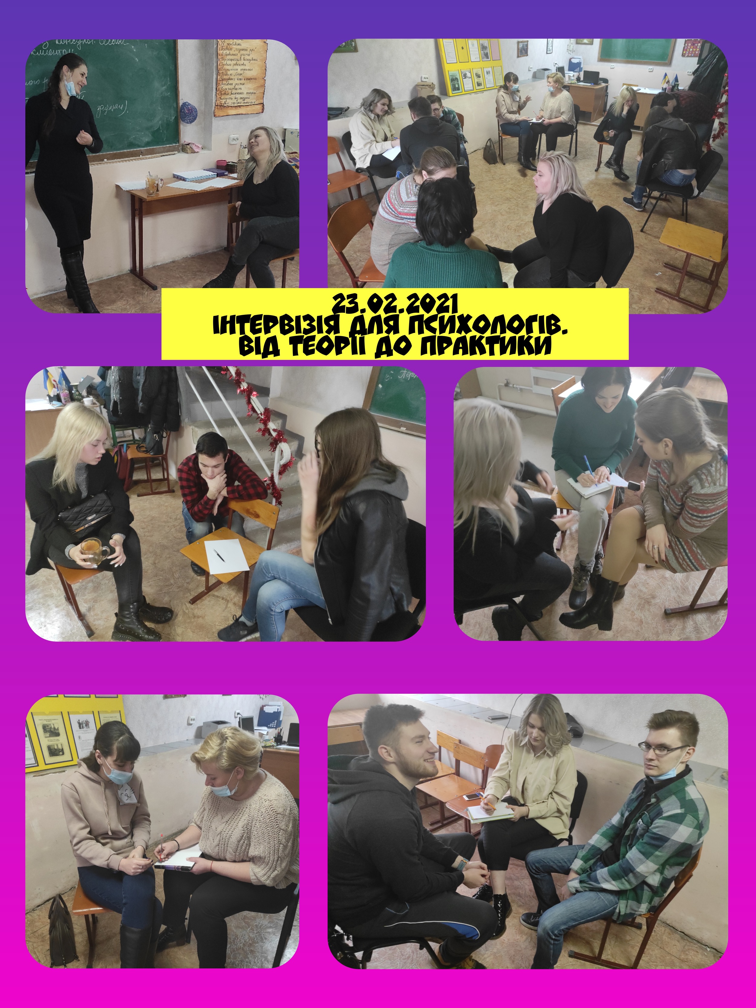 23 лютого 2021 року в рамках Центру психологічної служби університету була проведена інтервізія для студентів 3 та 6 курсів спеціальності «Психологія» факультету педагогіки та психології.
