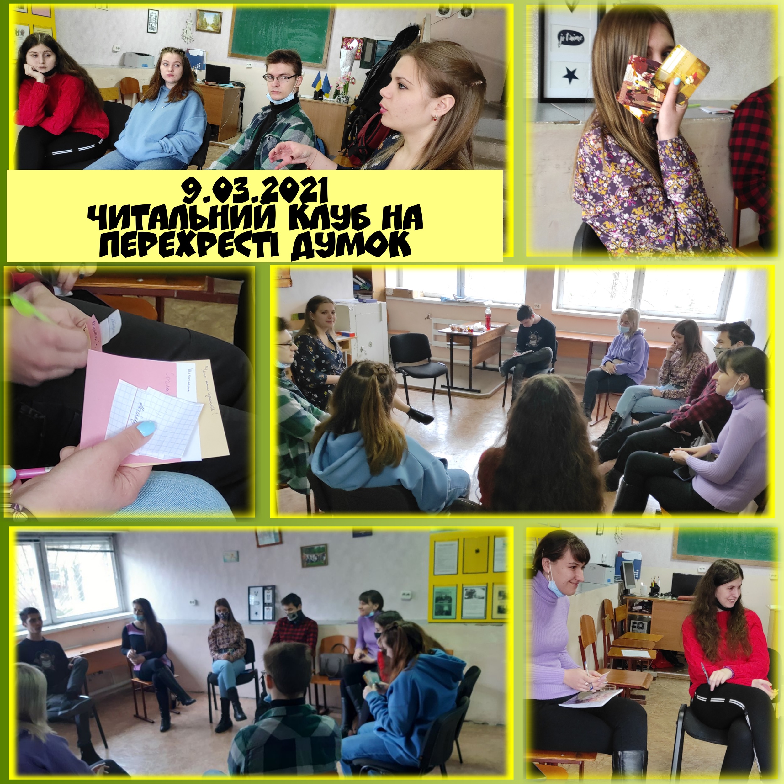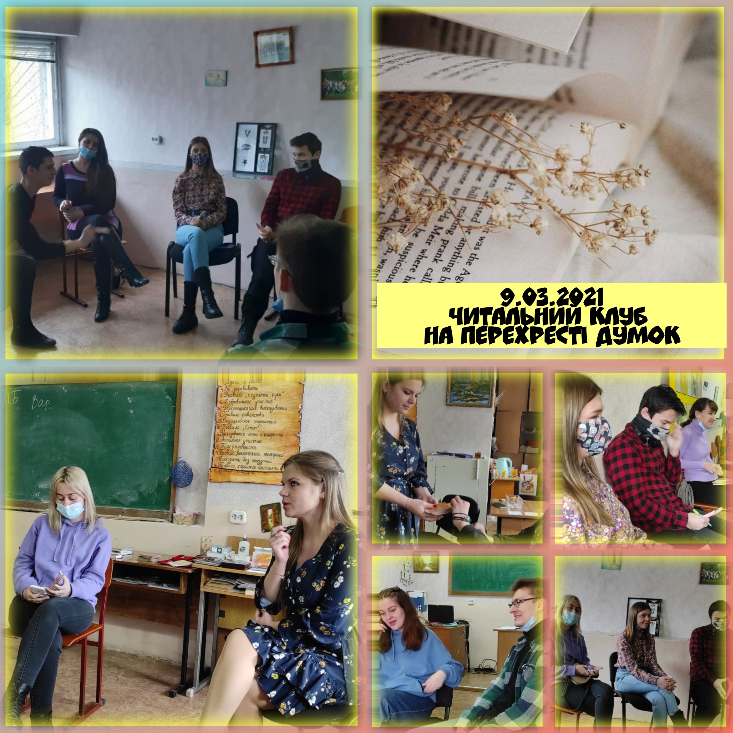 9 березня 2021 року в рамках Центру психологічної служби був проведений читальний клуб «На перехресті думок» зі студентами 226 групи спеціальності «Англійська мова. Переклад» філологічного факультету та 3 курсу спеціальності «Психологія» факультету педагогіки та психології.