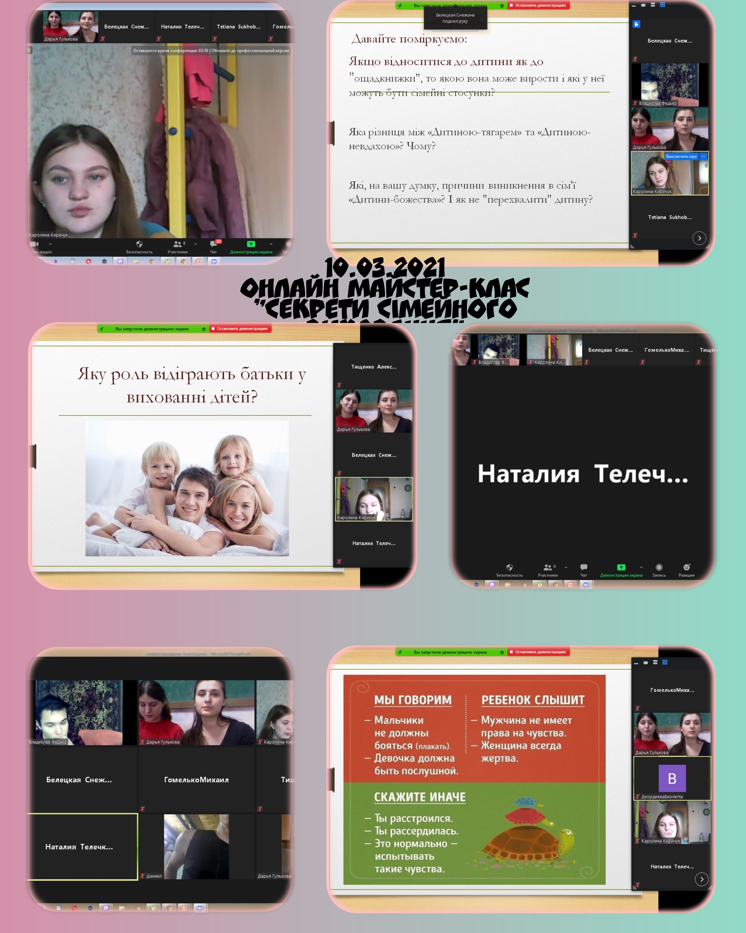 10 березня був проведений майстер-клас в режимі онлайн на тему «Секрети сімейного виховання» для студентів 3-6 курсів спеціальності «Психологія» факультету педагогіки та психології.