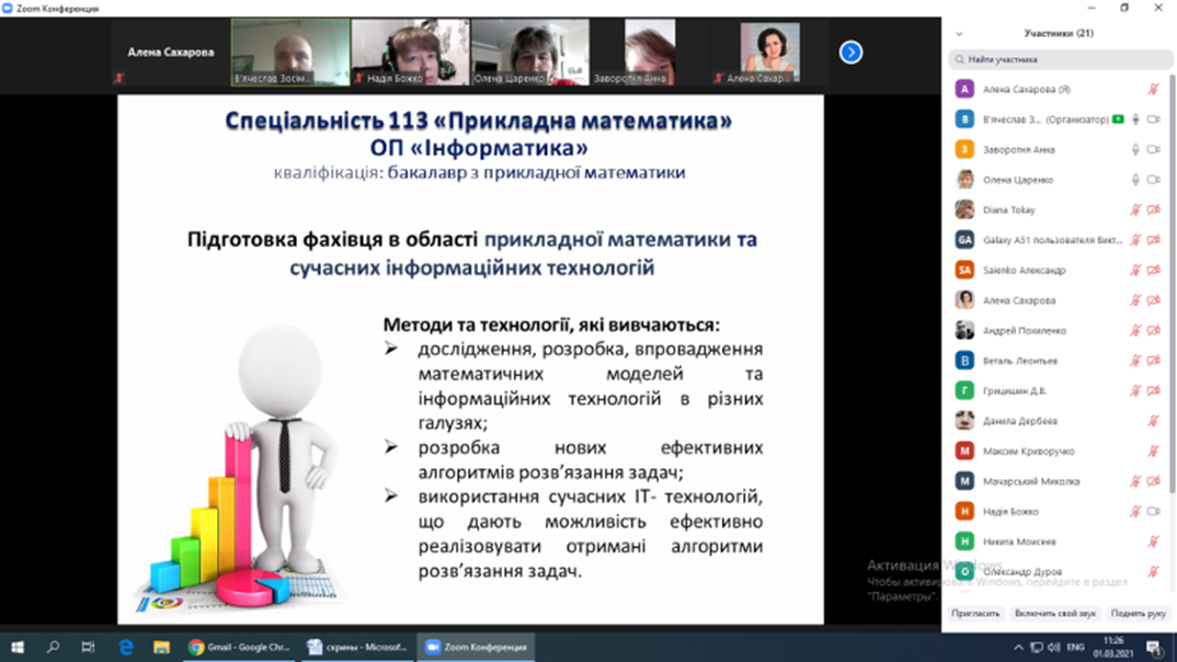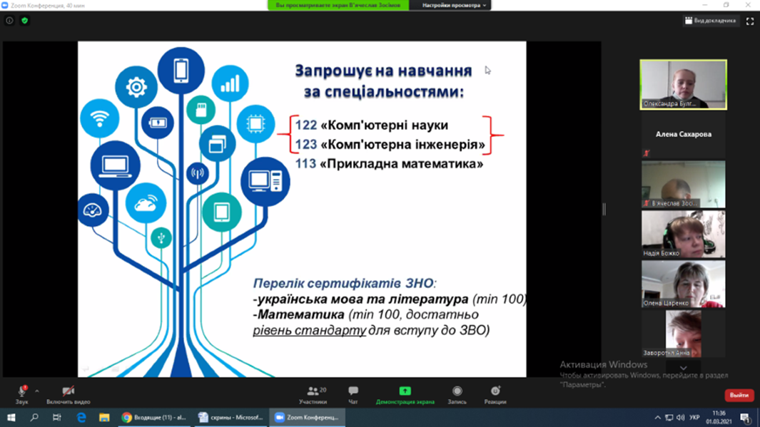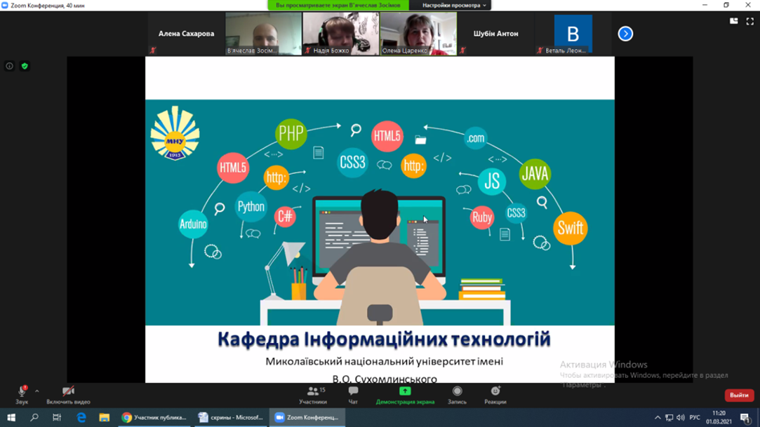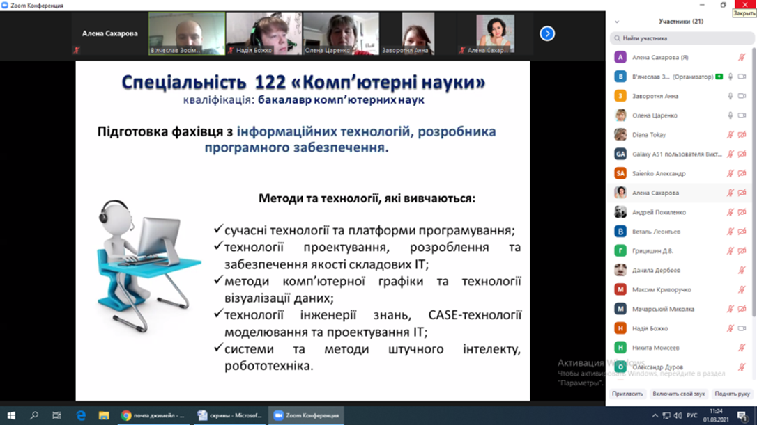 З метою профорієнтації випускників Відокремленого структурного підрозділу «Фахового коледжу Миколаївського національного університету імені В.О.Сухомлинського» спеціальностей «Комп’ютерна інженерія» та «Прикладна математика» було проведено онлайн-зустріч із завідувачем кафедри інформаційних технологій Миколаївського національного університету імені В.О.Сухомлинського Зосімовим Валерієм В’ячеславовичем та Булгаковою Олександрою Сергіївною.