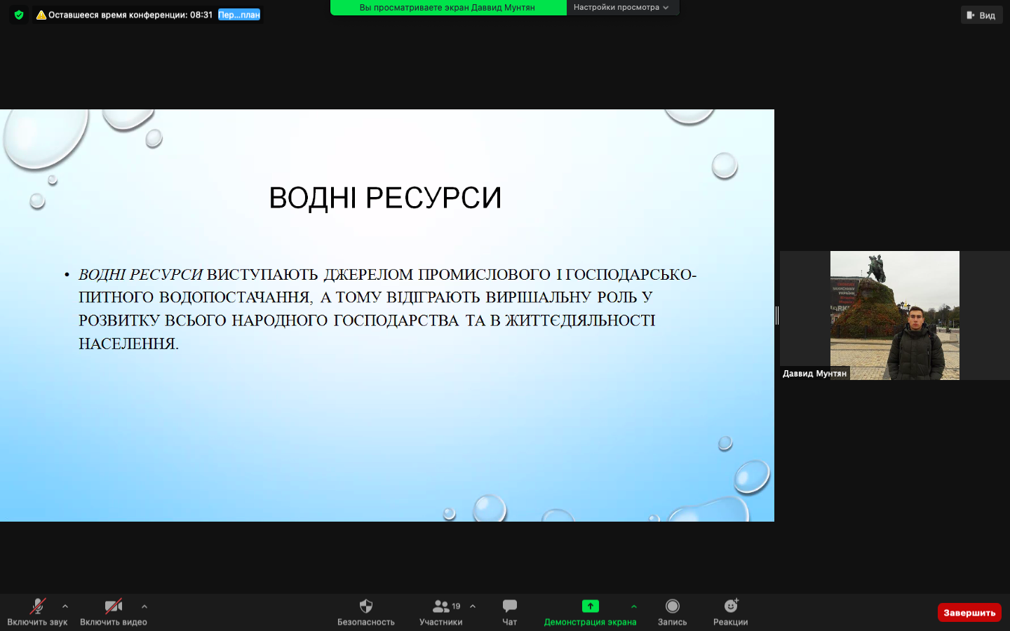 МУНТЯН ДАВИД, студент четвертого курсу спеціальності Право, окреслив проблематику: «Водні ресурси та водний природо-заповідний фонд Миколаївської області»