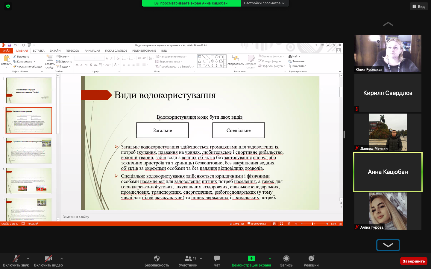 ЗАРЄЧНА РУСЛАВА разом з КАЦЮБАН АННОЮ пропрацювали та висвітлили «Основні види і порядок водокористування в Україні»