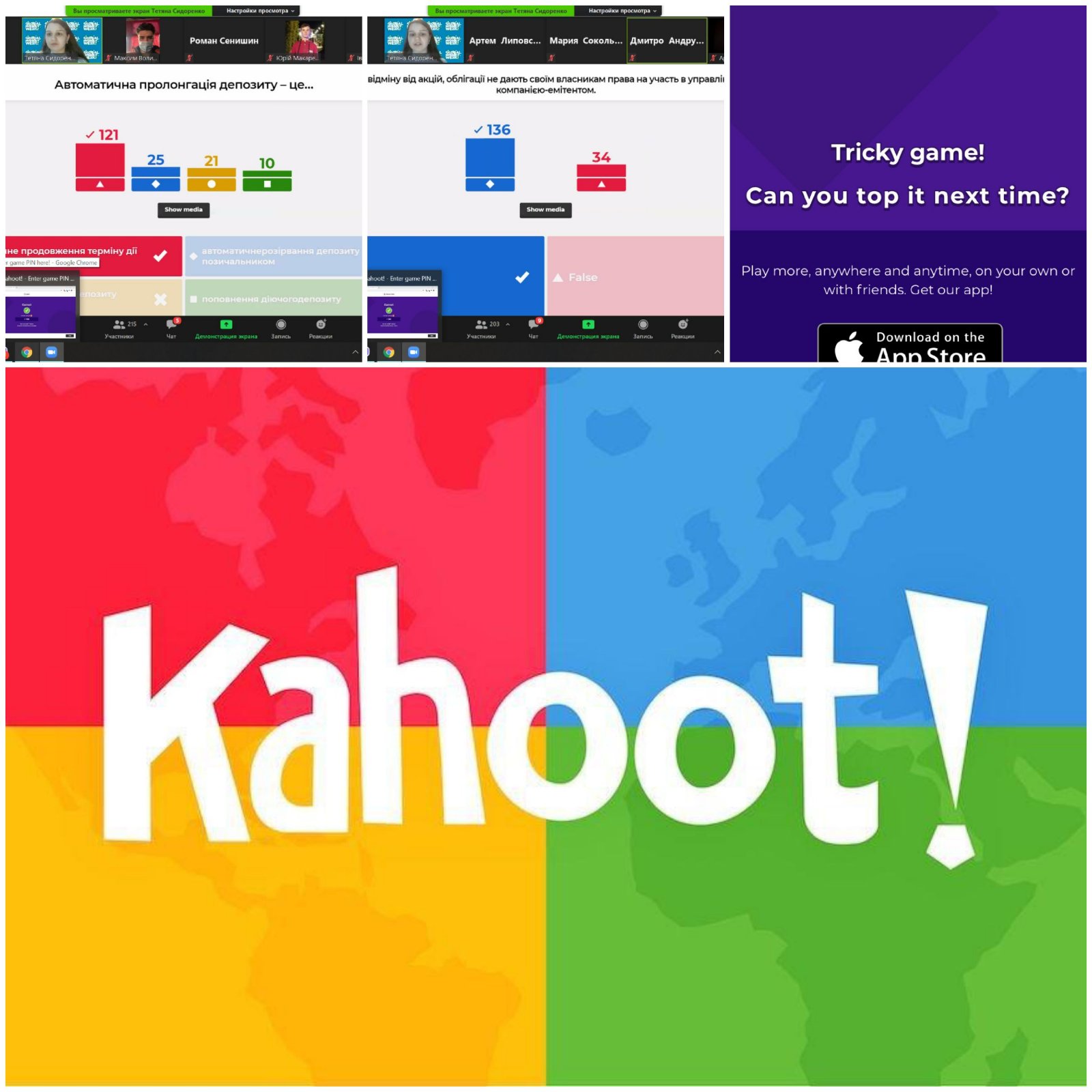 24 березня 2021 року, студенти Відокремленого структурного підрозділу «Фахового коледжу Миколаївського національного університету імені В.О.Сухомлинського» на платформі Zoom приєдналися до завершальної інтелектуальної гри «Kahoot!Вечірка» на фінансову тематику та мали унікальну можливість познайомитись із студентами інших закладів вищої освіти, а також перевірити свій рівень фінансової грамотності!