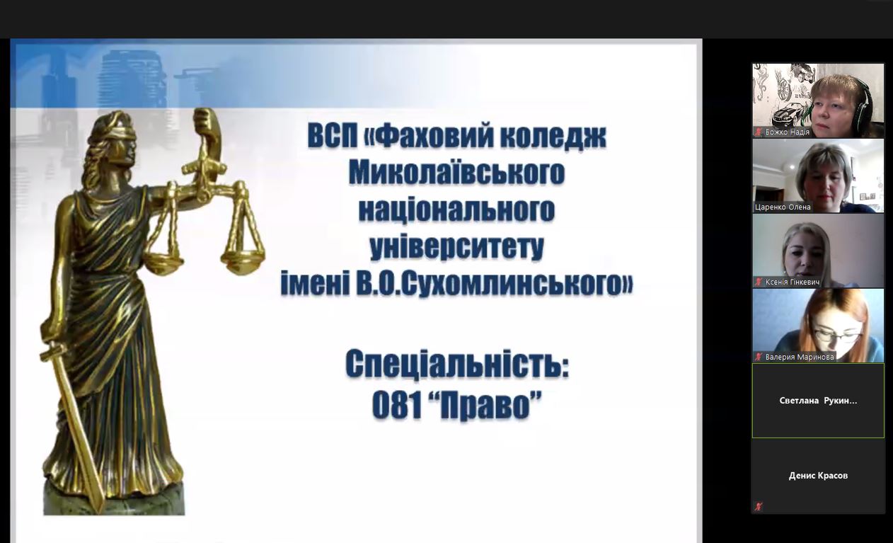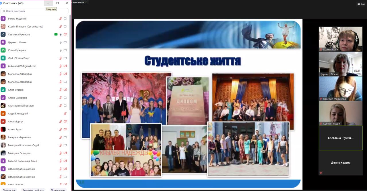 А заступник директора з навчальної роботи коледжу Надія Валеріївна Божко акцентувала увагу учасників онлайн зустрічі на наукових здобутках студентської спільноти коледжу та розповіла про особливості навчального процесу, зокрема і в карантинних умовах.