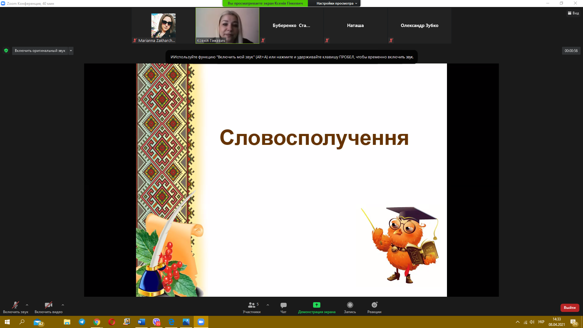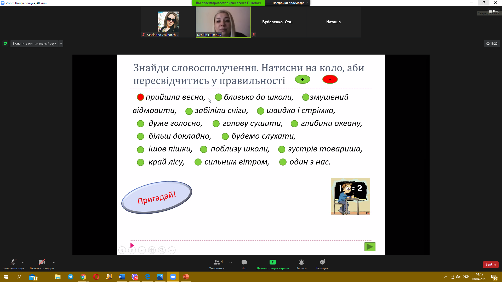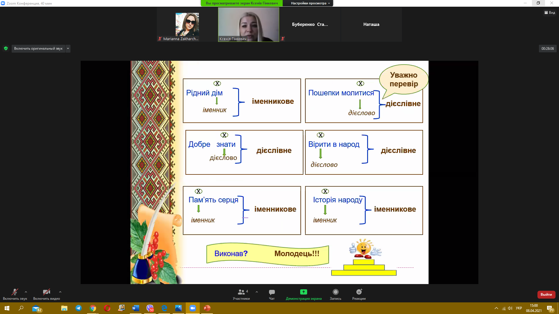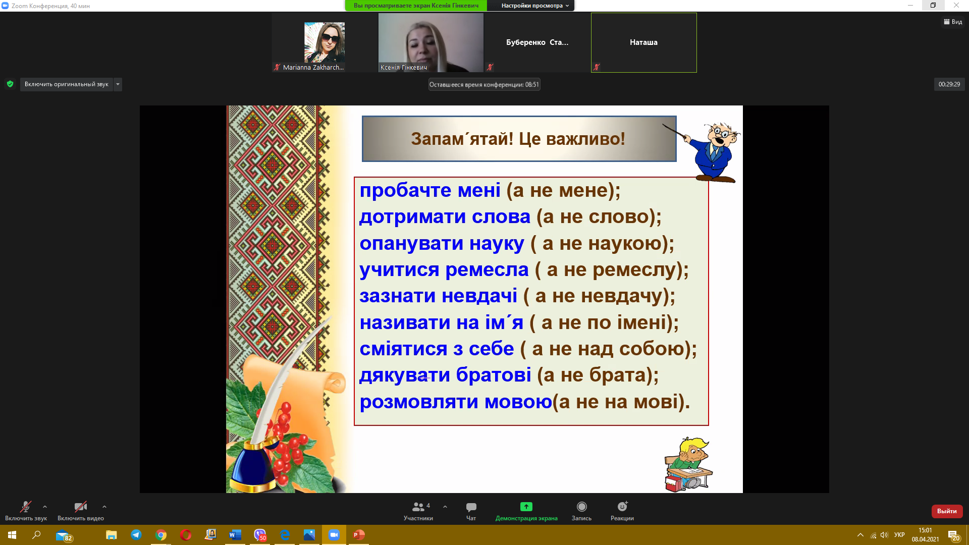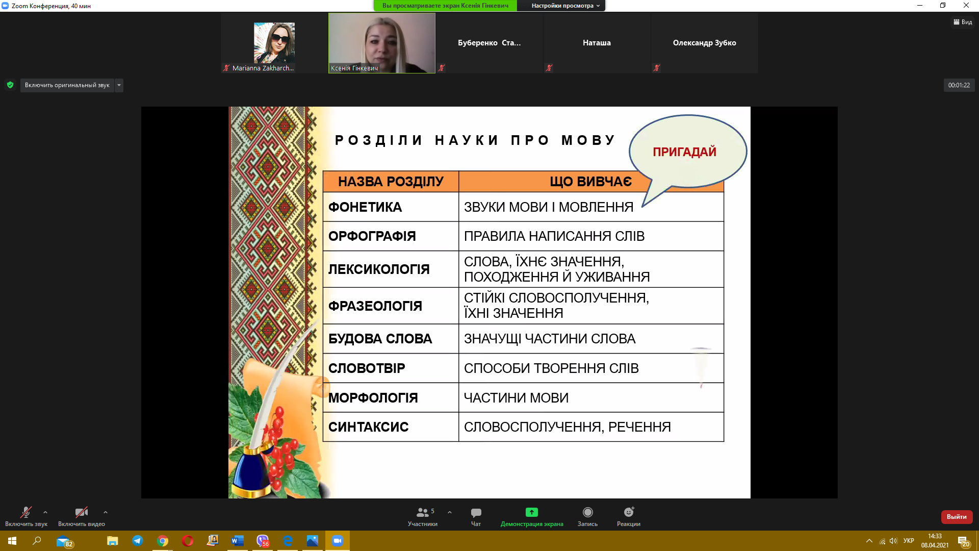 8 квітня 2021 року пройшов черговий майстер-клас з теми «Синтаксис. Словосполучення» від викладача української мови Гінкевич Оксани Валентинівни. Ми звертаємо увагу на методи виконання типових завдань та на помилки, яких найчастіше допускають при розв’язанні студенти, надаємо поради, як їх уникнути.