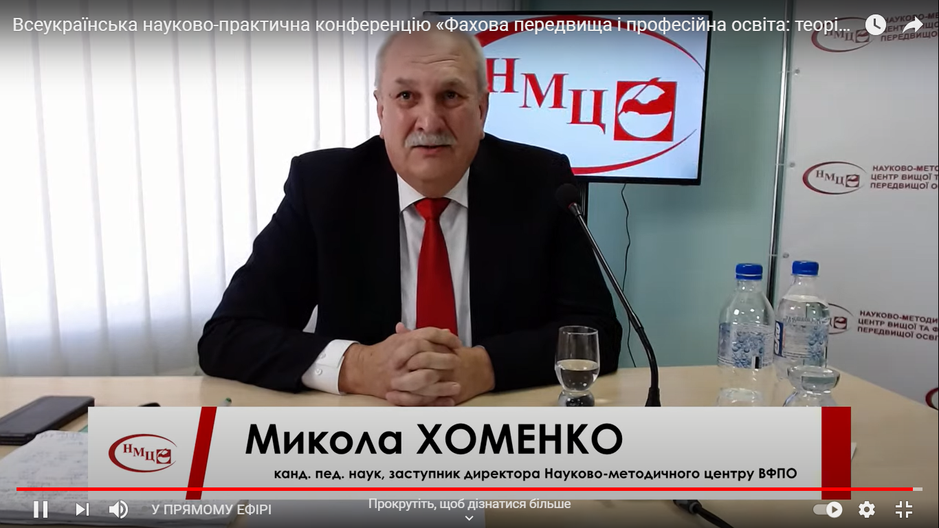 Микола ХОМЕНКО, канд. пед. наук, заступник директора Науково-методичного центру ВФПО з тематикою доповіді: «Визначальні фактори підготовки фахового молодшого бакалавра. Проблеми та шляхи їх вирішення»