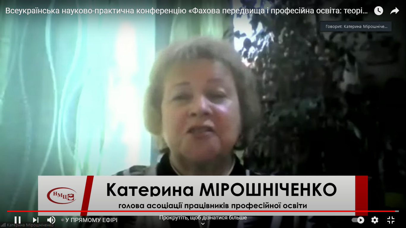 Катерина МІРОШНІЧЕНКО, голова асоціації працівників професійної освіти (начальник відділу змісту освіти і організації навчального процесу головного управління професійної освіти директорату професійної освіти), з представленням запровадження нових нормативних підходів до розроблення та запровадження короткострокових навчальних програм для здобуття часткових кваліфікацій та окремих компетентностей