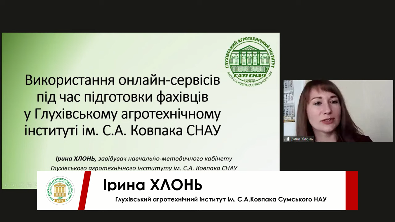Ірина ХЛОНЬ, завідувач навчально-методичним кабінетом Глухівського агротехнічного інституту ім. С.А.Ковпака Сумського НАУ з доповідд. «Використання онлайн-сервісів під час підготовки фахівців у закладі освіти»