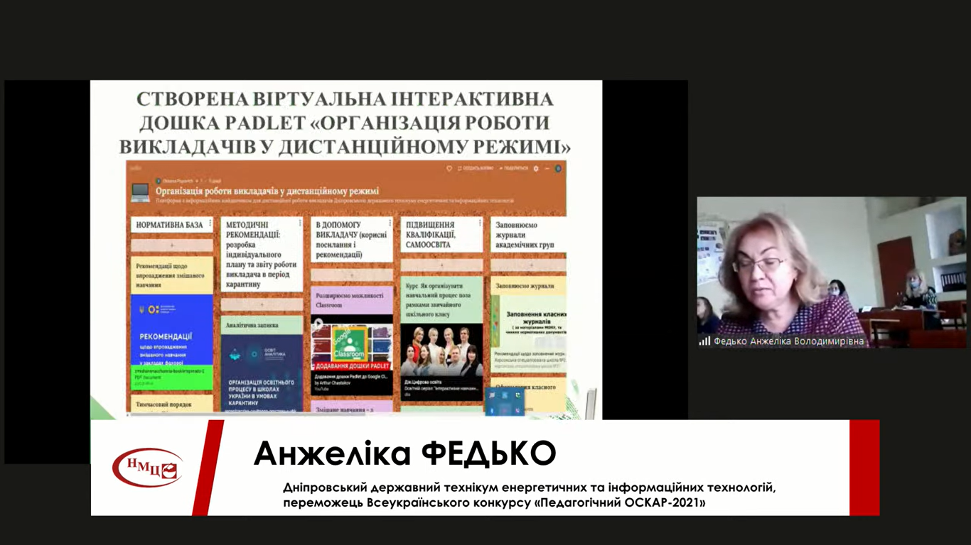 Анжеліка ФЕДЬКО, канд. іст. наук, директор Дніпровського державного технікуму енергетичних та інформаційних технологій, переможець Всеукраїнського конкурсу «Педагогічний ОСКАР-2021» з презентацією власного досвіду у контексті «Впровадження пакету спеціалізованого хмарного програмного забезпечення і інструментів для спільної роботи та використання технологій дистанційного навчання»