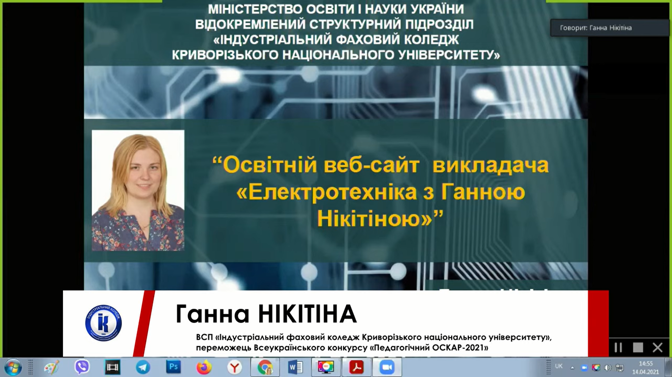 Ганна НІКІТІНА, канд. тех. наук, викладач ВСП «Індустріальний фаховий коледж Криворізького національного університету», переможець Всеукраїнського конкурсу «Педагогічний ОСКАР-2021» з презентацією власного педагогічного досвіду «Освітній вебсайт викладача «Електротехніка з Ганною Нікітіною»
