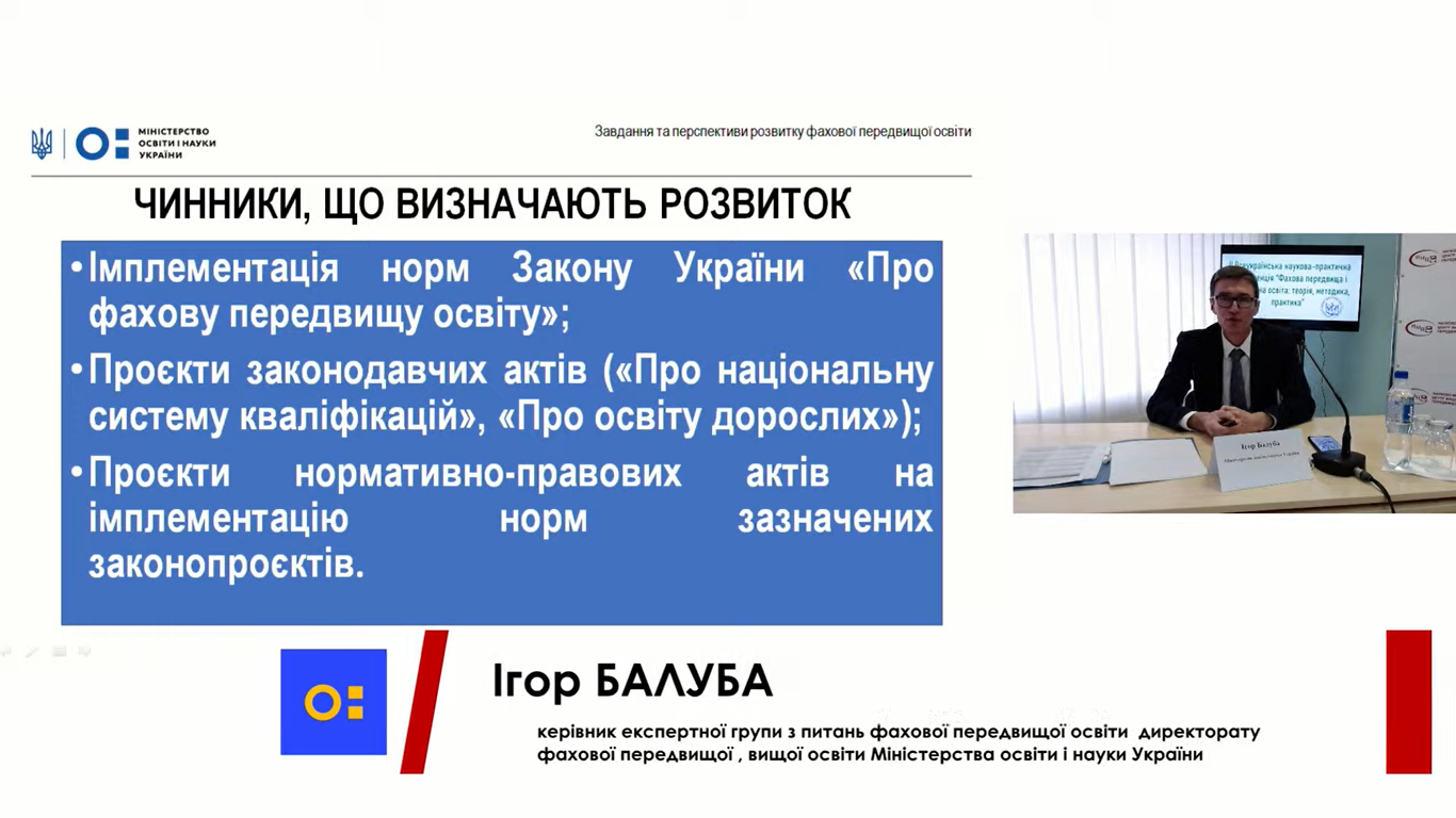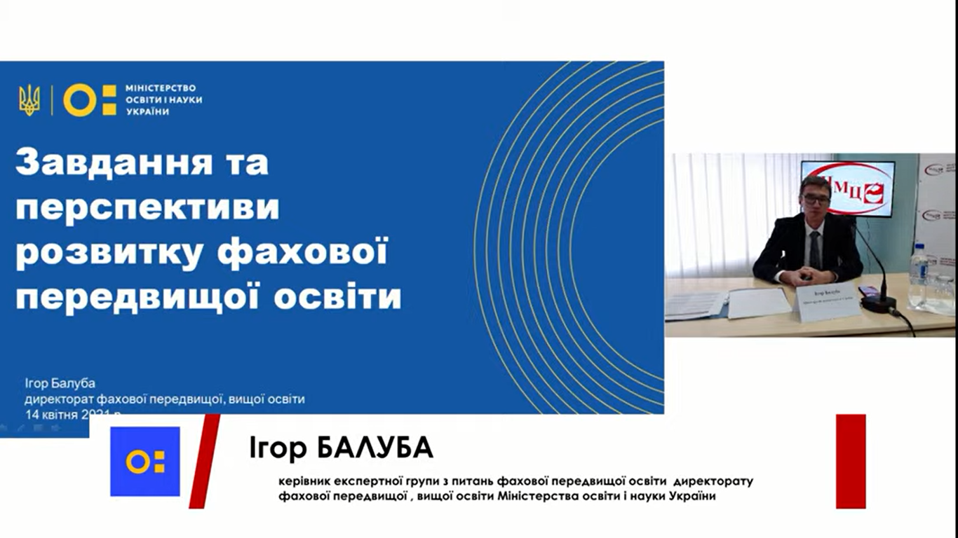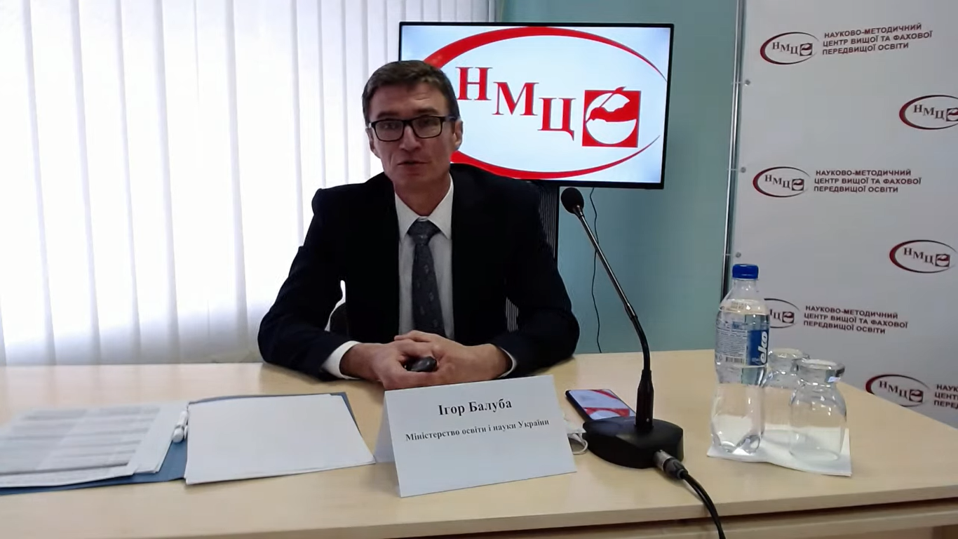 Ігор БАЛУБА, керівник експертної групи з питань фахової передвищої освіти директорату фахової передвищої, вищої освіти Міністерства освіти і науки України з представленням проблемного питання: «Фахова передвища освіта. Завдання та перспективи розвитку»