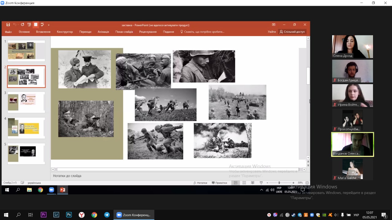 До уваги присутніх було представлено зворушливі поезії-посвяти, написані талановитими студентами І. Войтенко, А. Кучинською, К. Ложенко. У свою чергу, студенти Берест А., Богданов О., Гриценко Б., Мельничук В., Саржевська Д., Дубова А. здійснили пошуково-аналітичну роботу, читали оповідання про війну Василя Сухомлинського, знайшли спільну ідею творів військової тематики письменника.