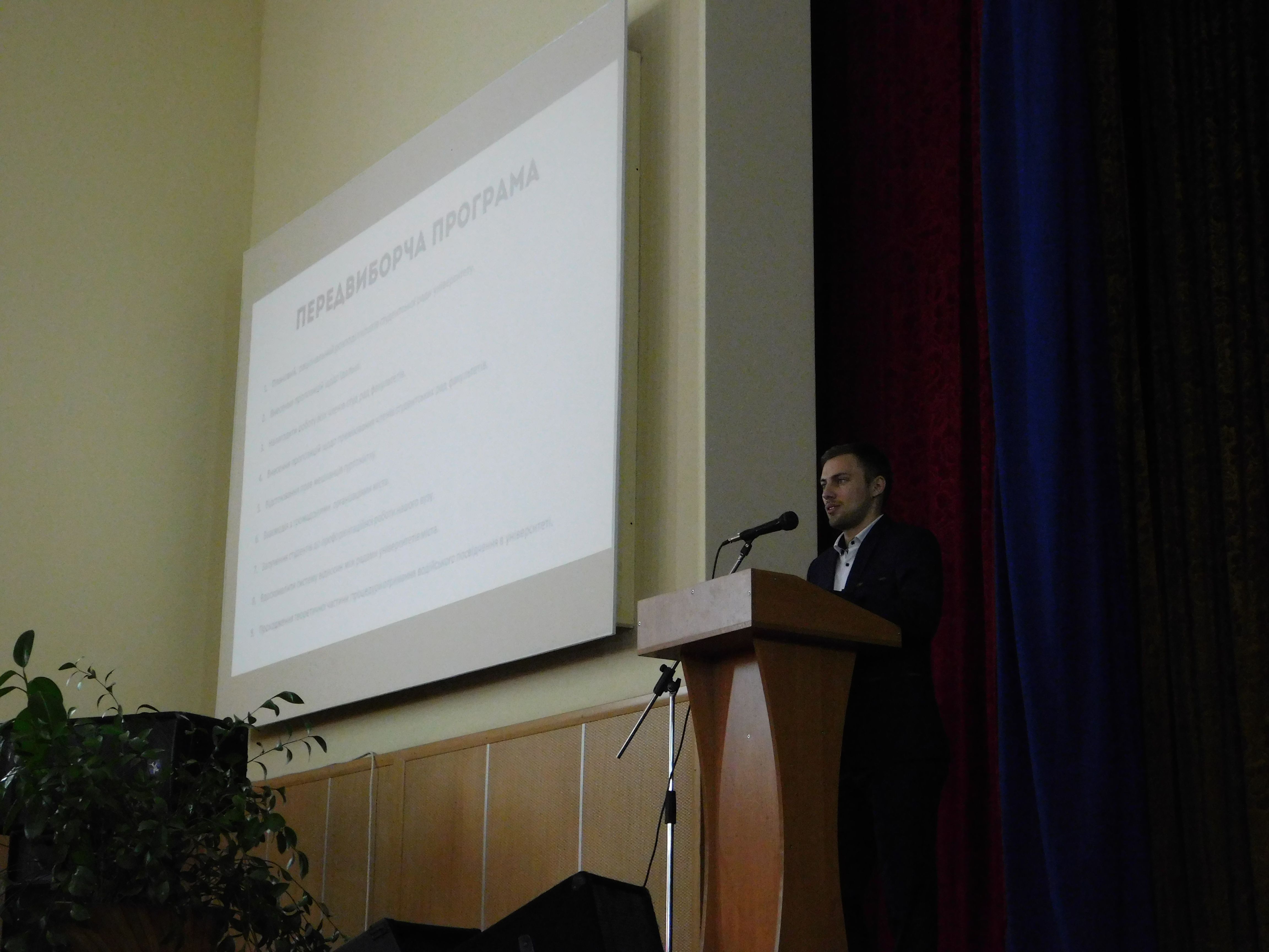 Кожен із кандидатів окреслив основні положення своїх програм, дав відповіді на питання. Шляхом таємного голосування, переважною більшістю голосів обрано нового голову студради – Гавриліце Вадима,студента 312 групи механіко-математичного факультету.