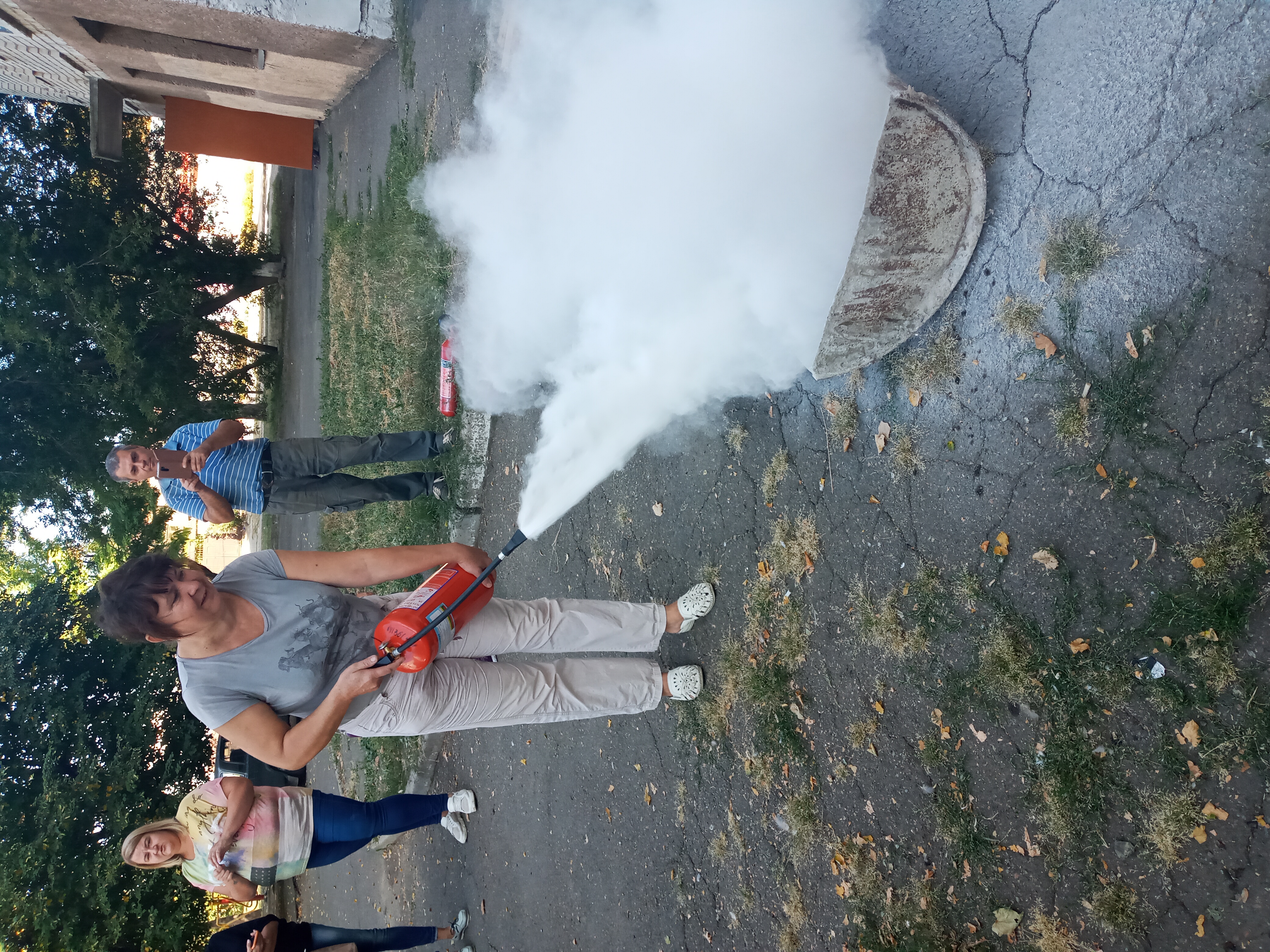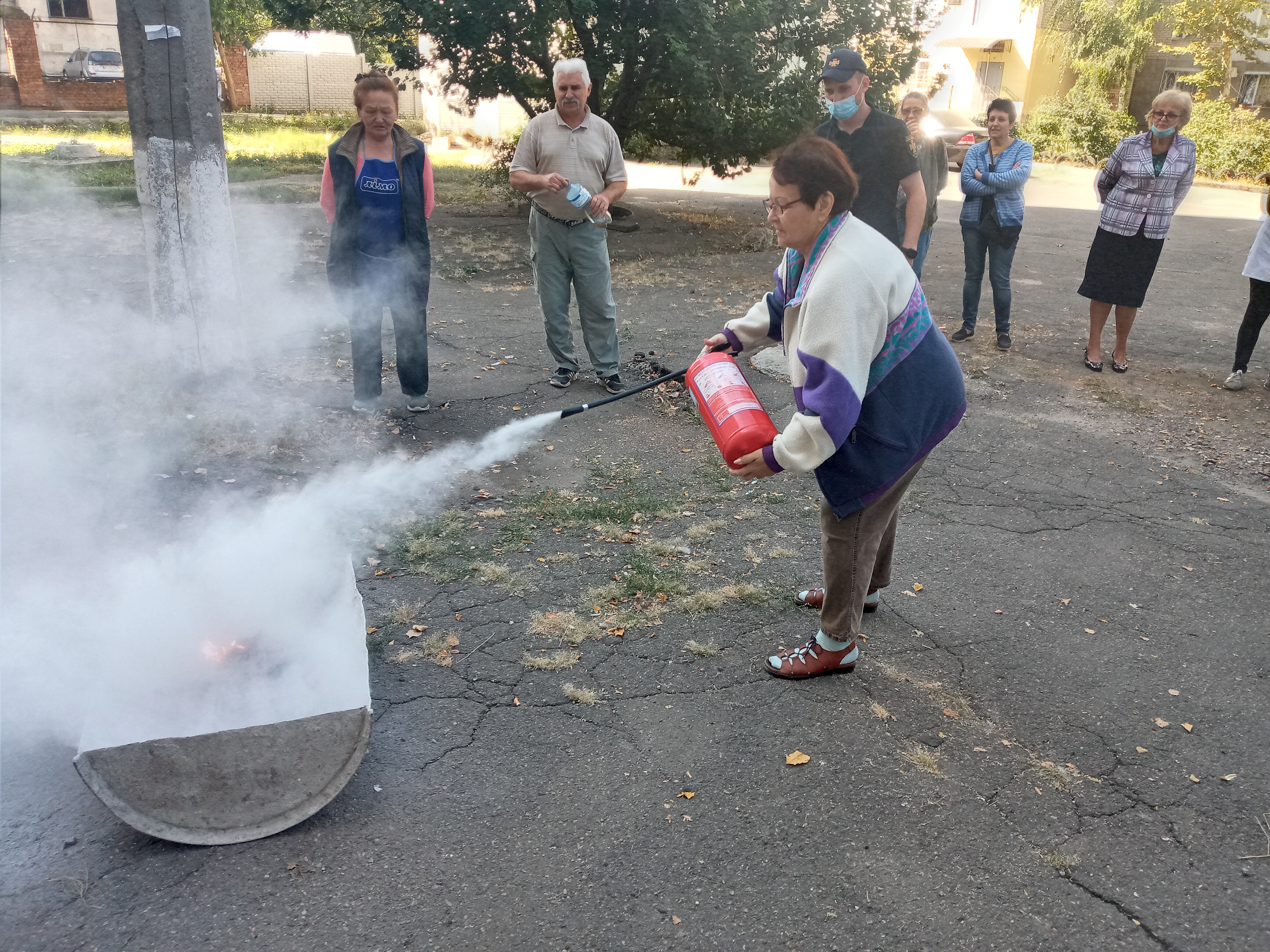 Тренування складалося з теоретичної та практичної частин. Під час теоретичного блоку провідні інспектори відділу запобігання надзвичайним ситуаціям Миколаївського районного управління ГУ ДСНС України в Миколаївській області А. В. Заболотько та С. О. Назаренко розповіли про первинні засоби пожежогасіння, зокрема про правила користування різними видами вогнегасників, пожежним рукавом і т.п. Крім того, інспектори провели бесіду про те, в якій ситуації доцільно використовувати той чи інший засіб пожежогасіння. У процесі практичного заняття працівники гуртожитку під пильним наглядом інспекторів та за їхньої участі мали можливість випробувати ефективність вуглекислотних та порошкових вогнегасників на імпровізованому вогнищі.