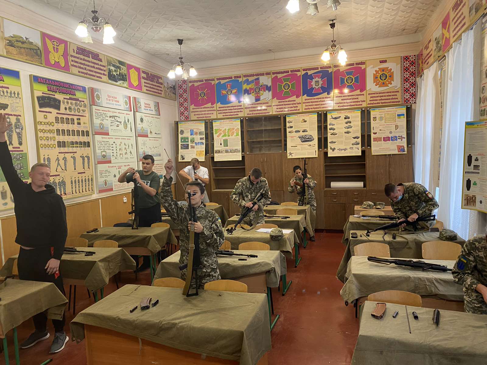 Заняття з освітньо-професійної програми Середня освіта (Фізична культура) та Захист України продовжилися на базі кафедри військової підготовки з дисципліни «Теорія та методика викладання предмета «Захист України»» (вогнева підготовка, розбирання та збирання АК-74, призначення, бойові властивості та ТТХ зброї).