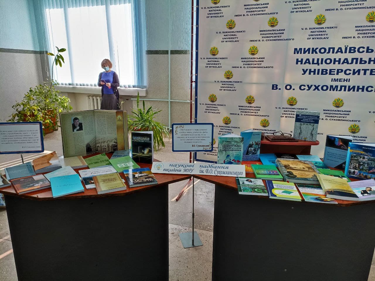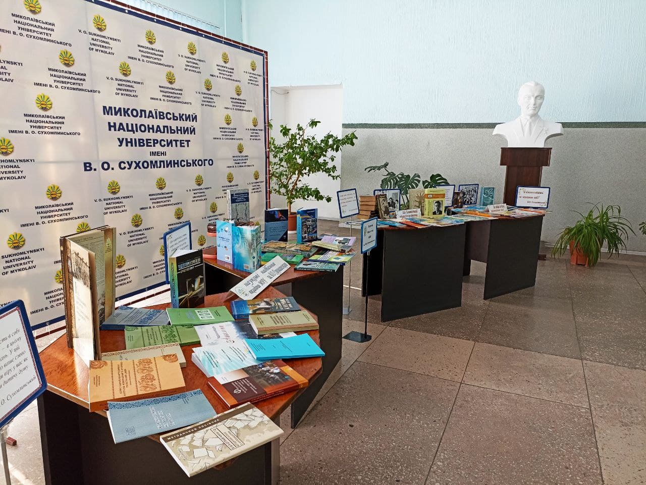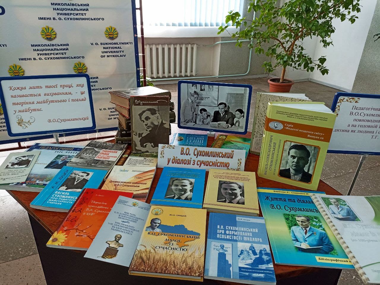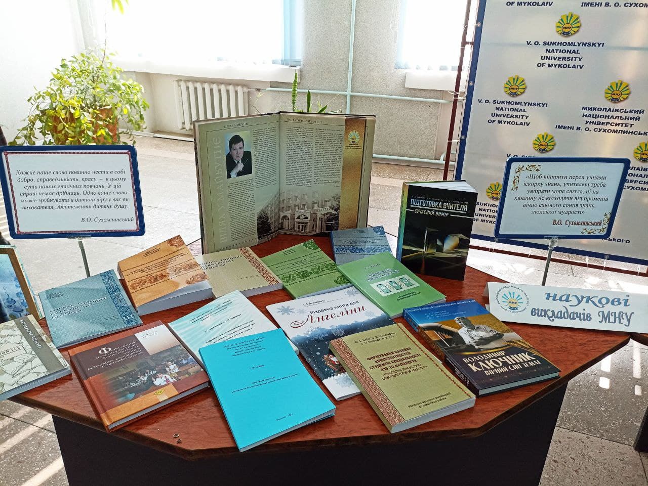 Книга – невід’ємна частина історії людства, його діяльності та розвитку науки. І тому урочистості, пов’язані зі 108-ою річницею Миколаївського національного університету імені В.О. Сухомлинського та 103-ою річницею від дня народження Василя Олександровича Сухомлинського, не стали винятком для експонування книжкової виставки.
