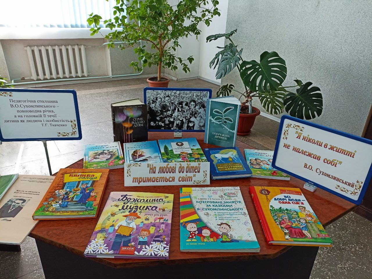 Саме видатному українському педагогу, публіцисту та письменнику була присвячена виставка «В.О. Сухомлинський: діалог із сучасністю», підготовлена співробітниками бібліотеки.