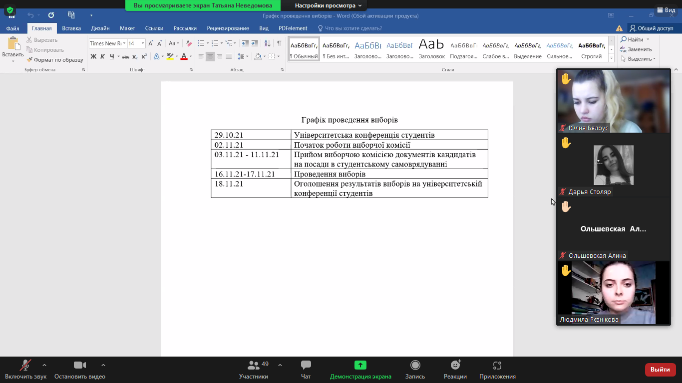 Традиційно перед початком виборів в актовій залі відбувається Конференція студентів Університету. У зв’язку з переходом на дистанційне навчання було вирішено провести конференцію в онлайн-режимі на платформі Zoom.