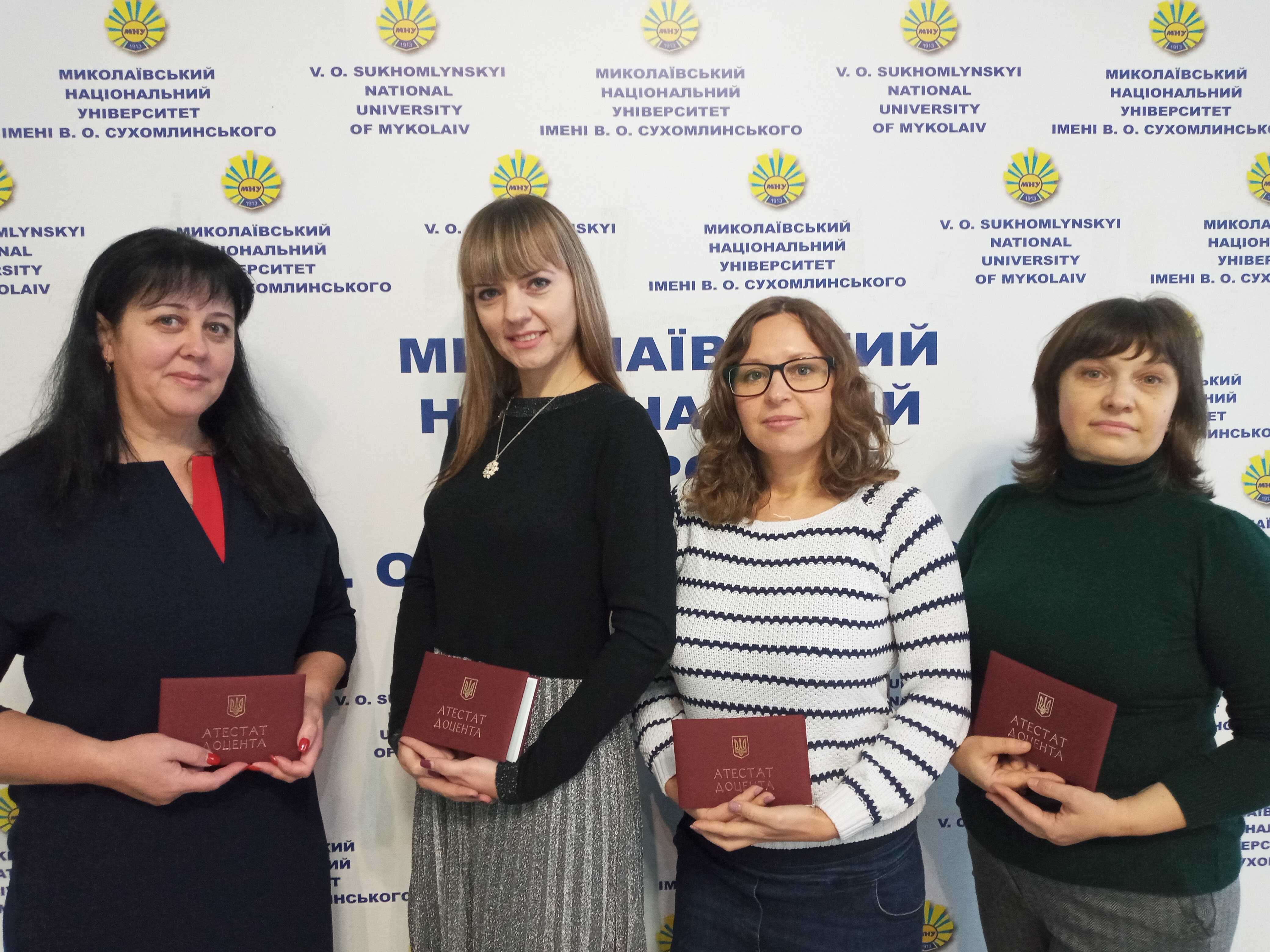 29 листопада 2021 року в актовій залі Миколаївського національного університету імені В. О. Сухомлинського ректор університету В. Д. Будак привітав з новими здобутками викладачів, яким присвоєно вчене звання доцента, і вручив атестати: