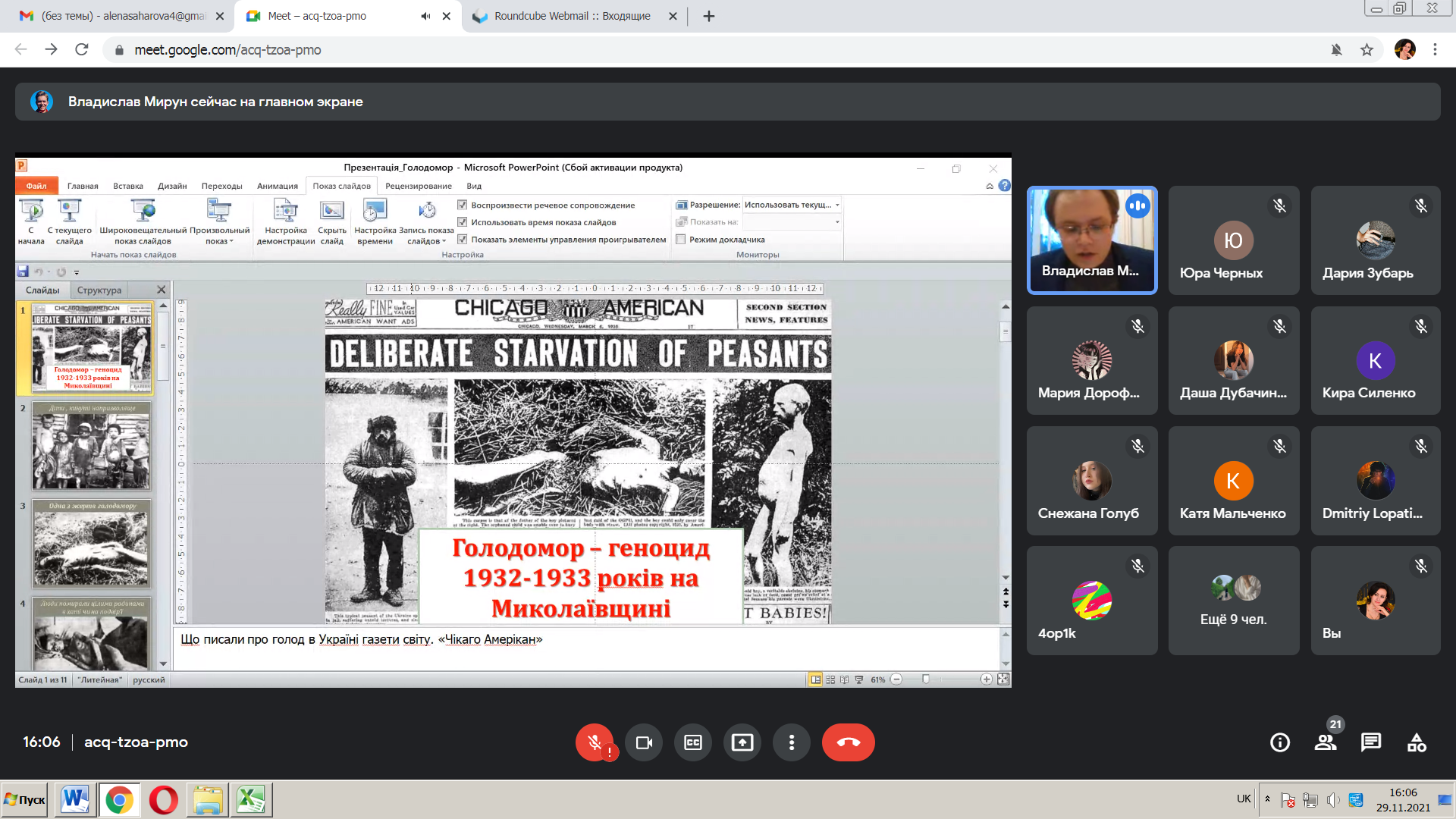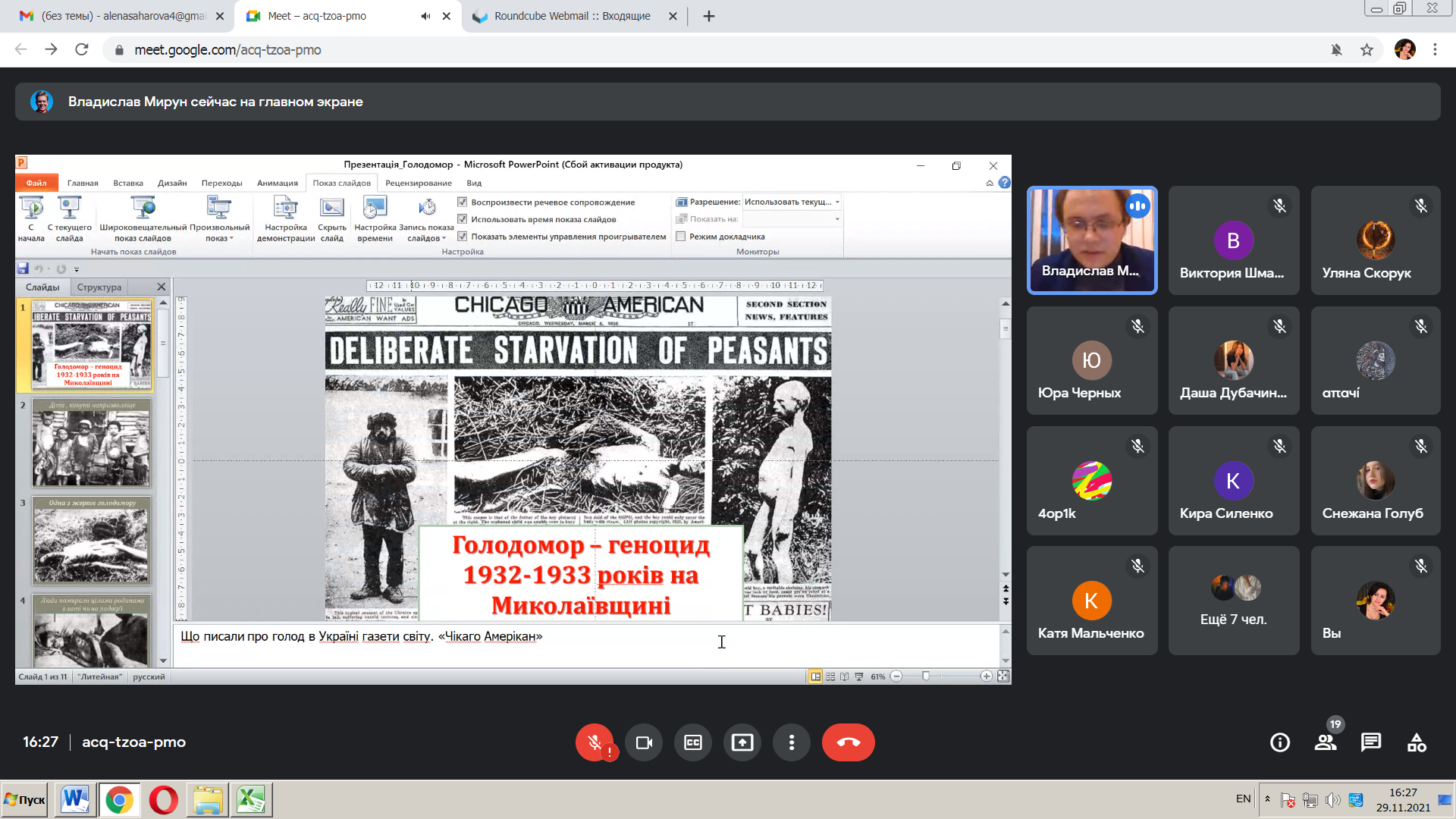 З метою гідного вшанування пам’яті жертв геноциду українського народу у ВСП «Фаховий коледж МНУ ім. В. О. Сухомлинського» викладачем Мируном Владиславом Віталійовичем було проведено онлайн-урок пам’яті «Голод – геноцид 1932-1933 років на Миколаївщині».