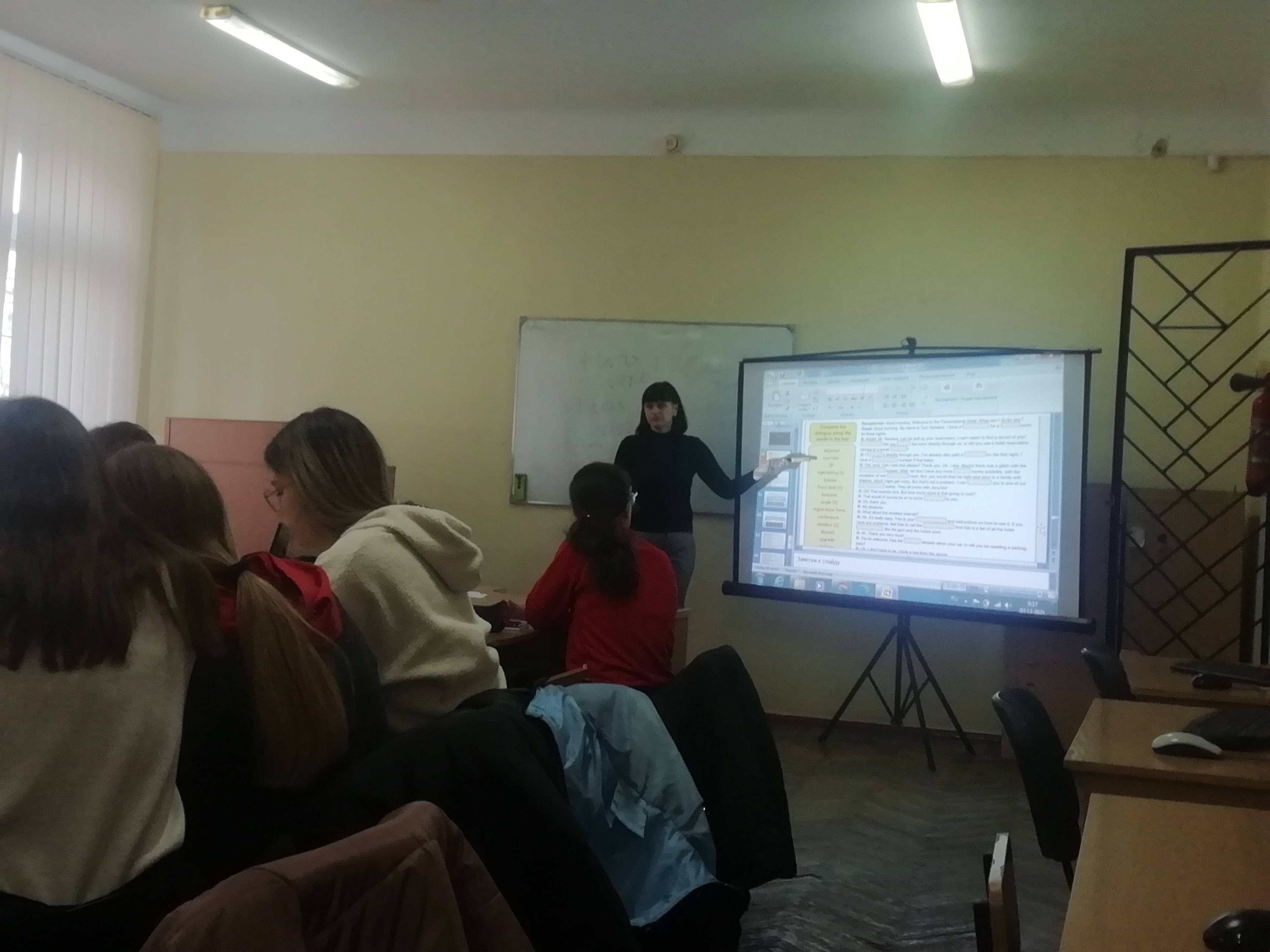 Під час заняття В. С. Левицька використовувала мультимедійну презентацію, цикл презентацій та відеофільми, що дало змогу студентам показати хорошу результативність та достатній рівень володіння теоретичним, практичним матеріалом, вміння його застосовувати на практиці. Викладач використовувала різні методи роботи та провела заняття у формі мовного практикуму з використанням методу критичного мислення, різноманітних методик роботи з лексичним матеріалом. Викладач передбачила постійну зайнятість і активність студентів, забезпечила максимальні умови для контролю знань, умінь і навичок. Виклад матеріалу проводиться послідовно, на належному науково-методичному рівні. Загалом заняття було проведено на високому методичному рівні із залученням сучасних технічних засобів.