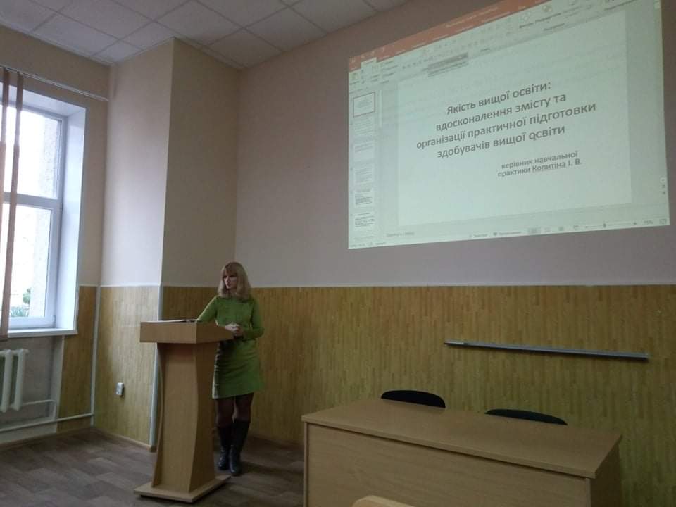 Програму навчання відкрив семінар на тему «Якість вищої освіти: вдосконалення змісту та організації практичної підготовки здобувачів вищої освіти» (доповідач – керівник навчальної практики Копитіна І. В.), що відбувся 12.01.2022 р. На семінарі було висвітлено нагальні питання якості практичної підготовки здобувачів вищої освіти та можливого їх подальшого працевлаштування. Особлива увага приділена питанню організаційних моментів проведення практики в період епідемічної небезпеки поширення COVID-19 та спроможності баз практик забезпечити студентів сучасними освітніми технологіями для нової української школи та актуальними інноваційними технологіями. Наприкінці семінару відбулася жива дискусія щодо процесу вдосконалення практичної підготовки здобувачів вищої освіти.