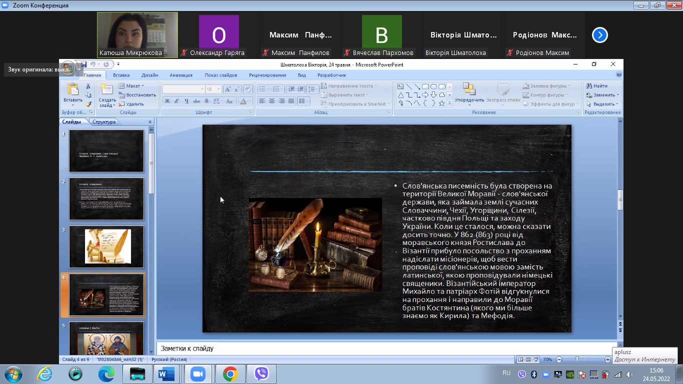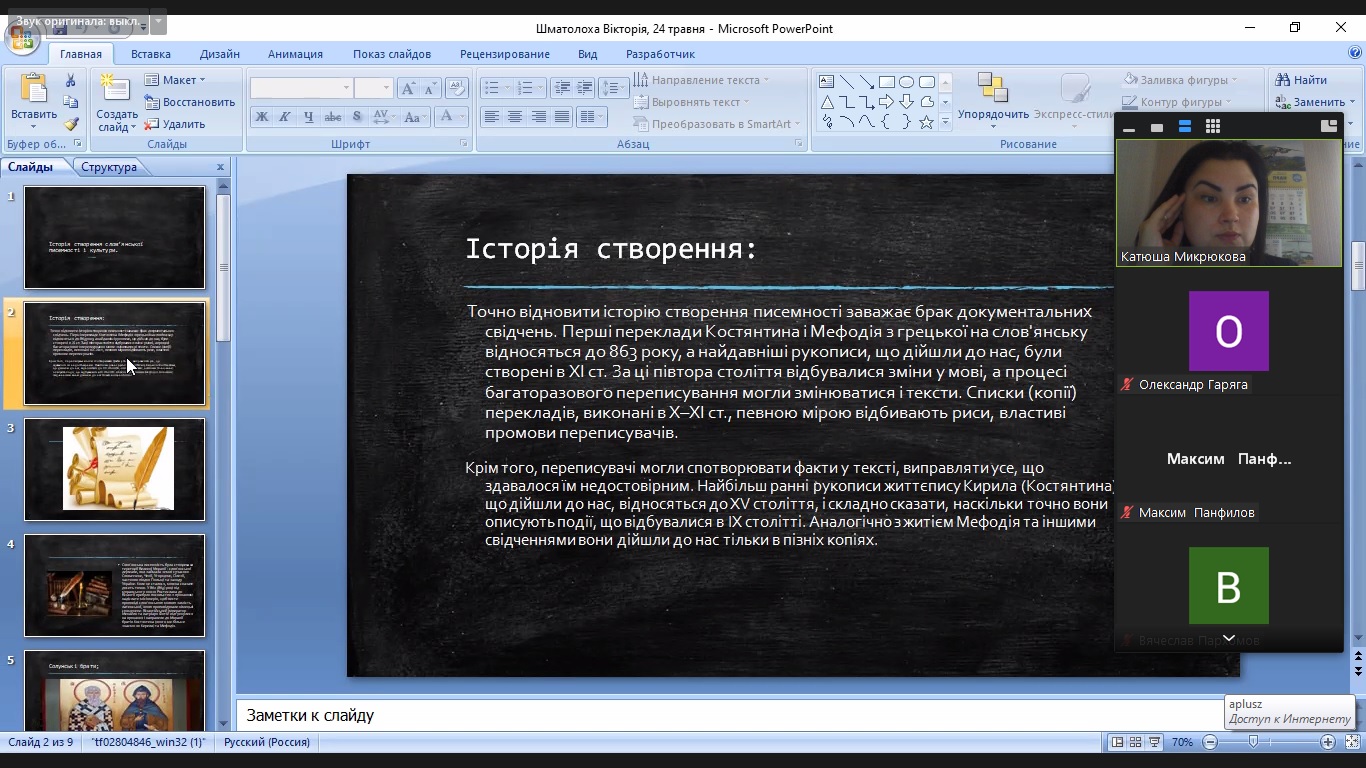 231 Соціальна робота) розповіла про історію розвитку слов’янської писемності. Бобейко Вікторія (115 група, спеціальність