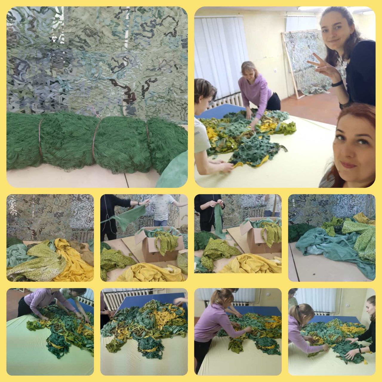 Тож голова студентської ради Миколаївського національного університету імені В. О. Сухомлинського Анастасія Єрмак спільно зі студентським активом також вирішили зробити свій внесок у боротьбу з агресором, тому зайнялись плетінням маскувальних сіток для ЗСУ. Це кропітка ручна робота, проте ніхто не нарікає. Небайдужі студенти радіють, що мають змогу допомогти військовим. Центр психологічної служби на чолі з фахівцем Людмилою Степанюк, яка протягом важких трьох місяців надає психологічну підтримку здобувачам вищої освіти, також долучилася до волонтерської акції.