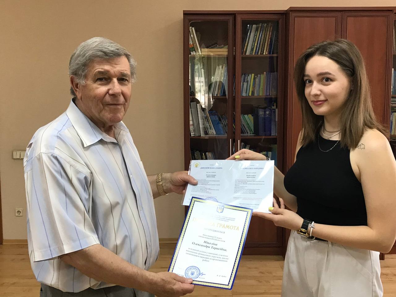 За підсумками 2021-2022 н. р. в Миколаївському національному університеті імені В. О. Сухомлинського диплом бакалавра отримали 627 спеціалістів – майбутніх професіоналів своєї справи. Серед них Ніколіна Олександра – психолог, лауреат Всеукраїнського конкурсу наукових робіт з психології. Випускниця отримала диплом з відзнакою та Почесну грамоту, яку вручив їй ректор університету Валерій Будак.