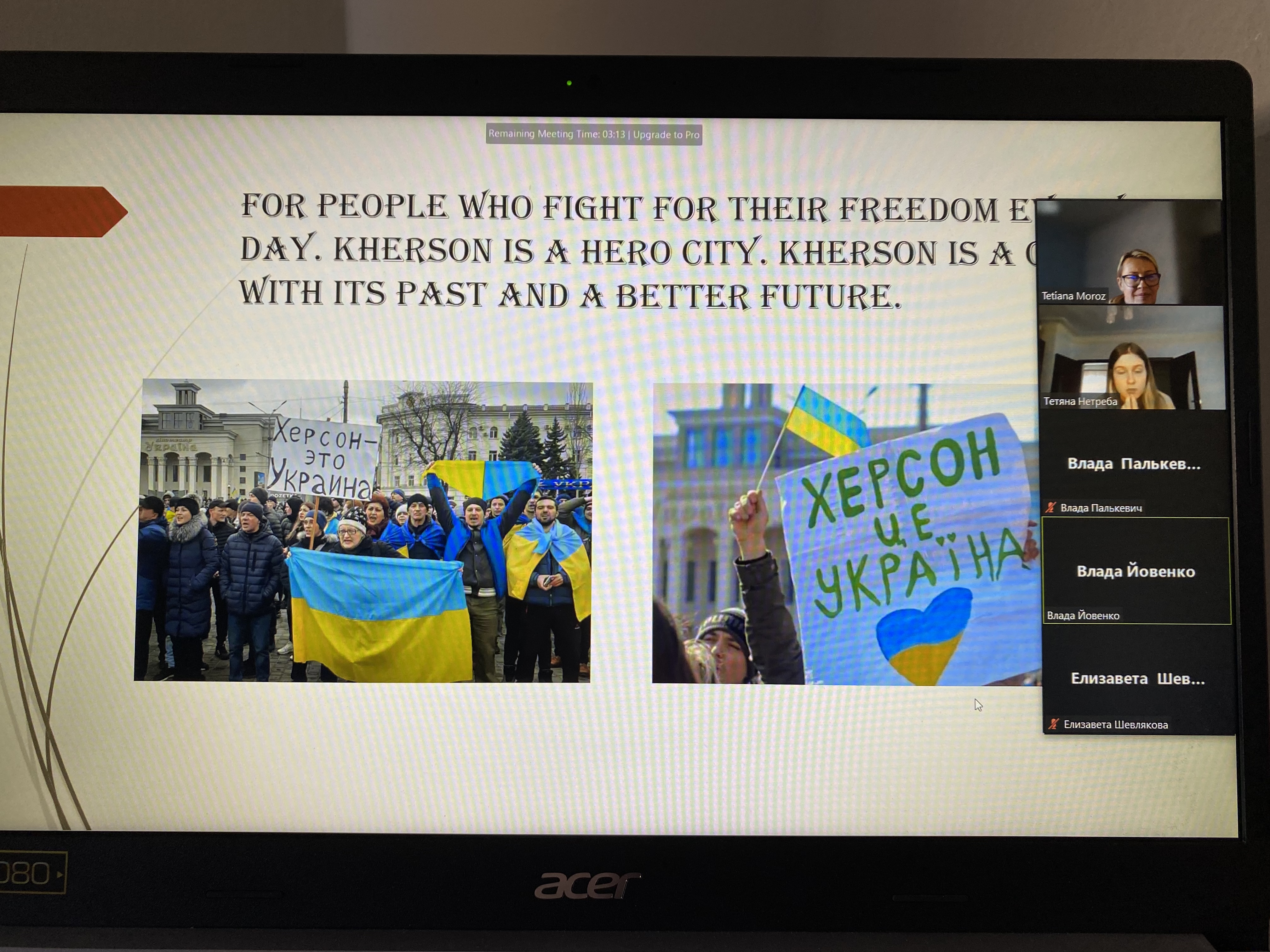 З нагоди 31-річниці незалежності України викладачі кафедри германської філології провели онлайн захід «Моя Україна – єдина та вільна». До участі у заході долучилися студенти 236, 326 груп філологічного факультету, які представили у презентаціях власне бачення вільної, єдиної та незалежної України.