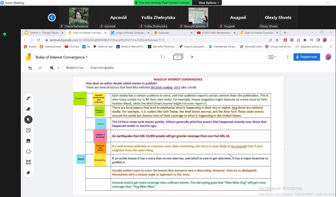 Презентація такої серйозної проблематики для молоді та підлітків вимагає особливих підходів, тому група тренерів, до складу якої входила студентка 446 групи Юлія Грицишина та викладачи кафедри Л. В. Айзікова та О. Є. Дем’яненко, підготувала цікавий контент і підібрала найсучасніші інтерактивні ресурси, спрямовані на розвиток медіаграмотності, уміння приймати поінформовані рішення, на посилення стійкості до дезінформації, формування навичок критичного мислення та інформаційної безпеки.