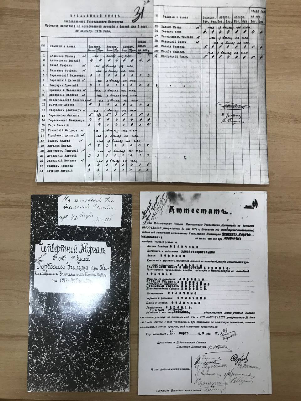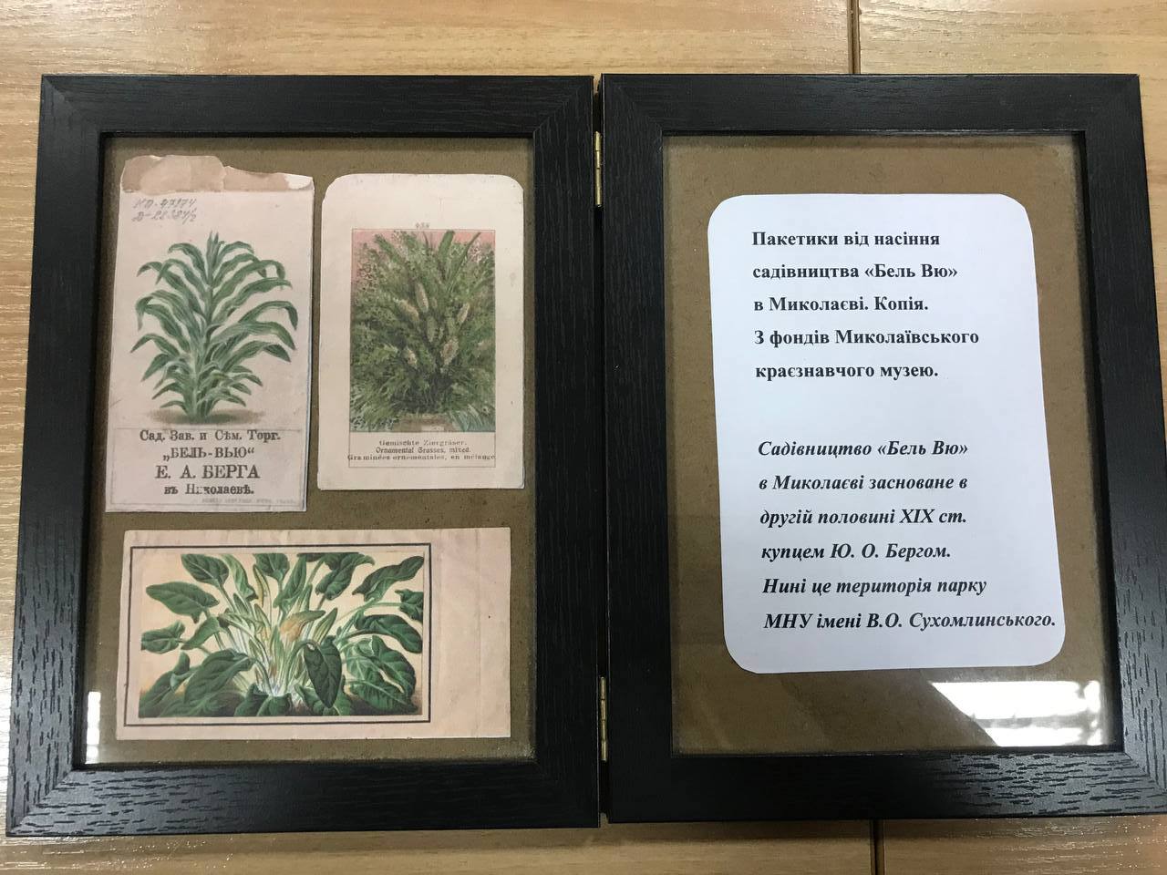 Основа виставки – матеріали про Миколаївський учительський інститут (1913-1920), про перші сходинки в історії найстарішого університету Миколаївщини. Охочі можуть переглянути документи, фотографії, старі підручники, меморіальні предмети, публікації про навчальний заклад, матеріали про старовинне садівництво «Бель-Вю» (нині територія університетського парку).