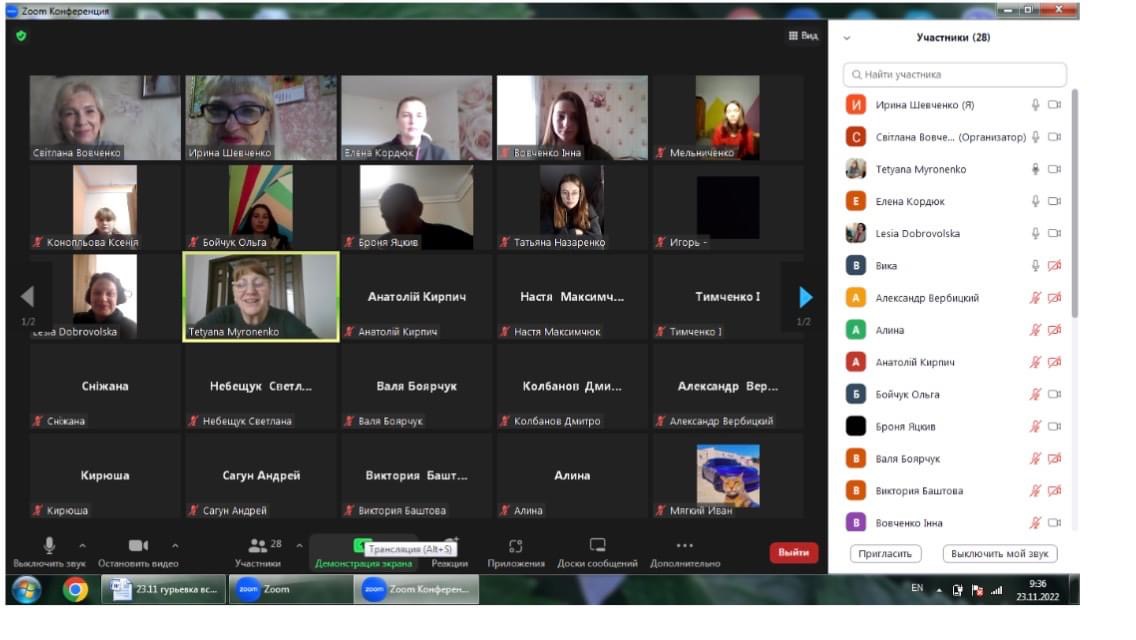 У заході взяли участь кандидат педагогічних наук, доцент Т. П. Мироненко, кандидат педагогічних наук, доцент Л. С. Добровольська, старший викладач, кандидат педагогічних наук І. В. Шевченко, старший викладач О. Л. Щербакова, викладач О. М. Кордюк.