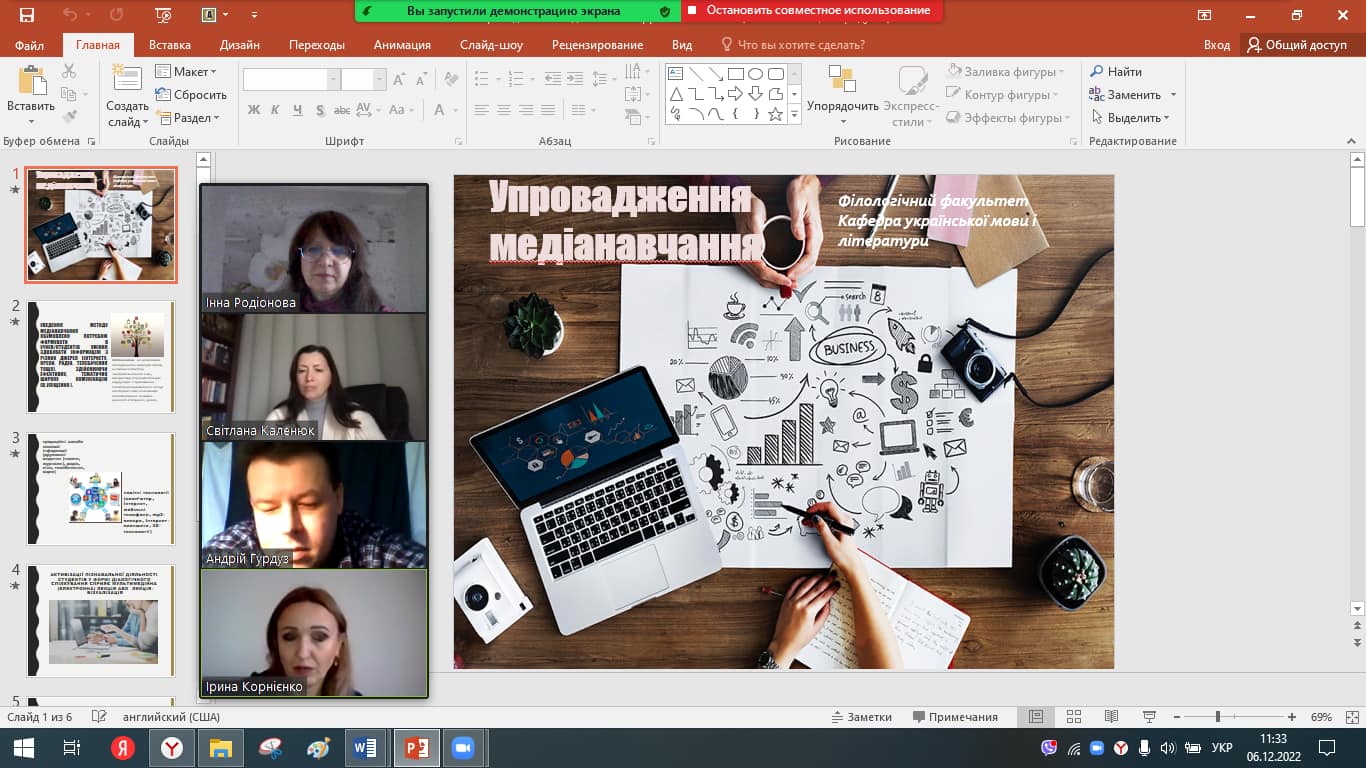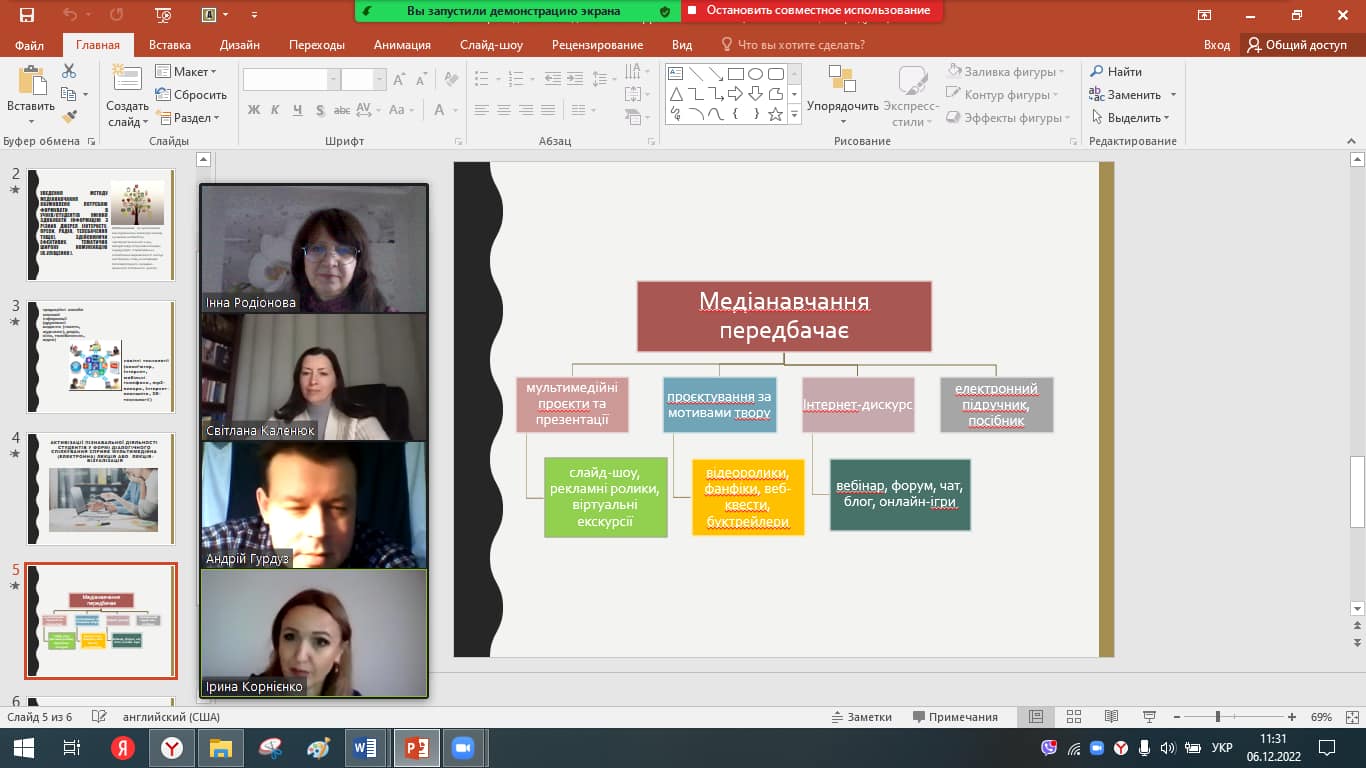 6 грудня доцентом кафедри української мови і літератури І. Г. Родіоновою проведено методичний семінар «Упровадження методу медіанавчання під час викладання дисципліни «Історія української літератури».