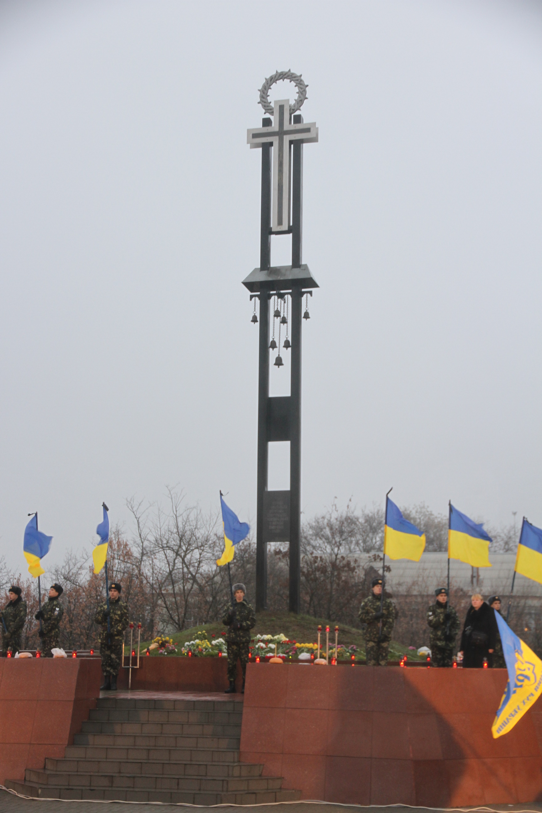 Активісти разом із викладачами поклали квіти до пам’ятного знаку жертвам Голодомору.