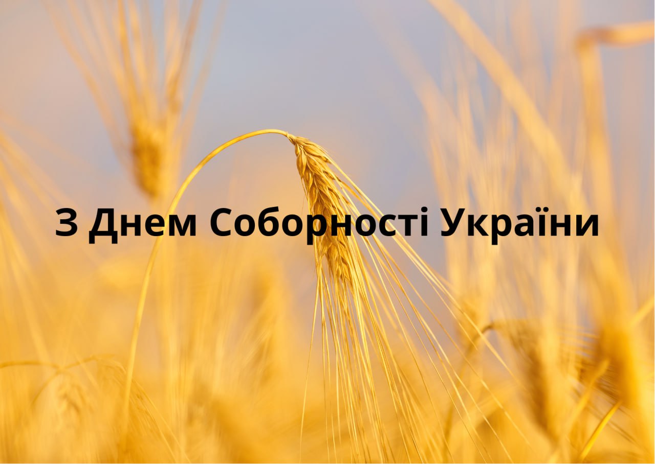 Вітаємо з Днем Соборності України! Щиро бажаємо завжди любити свою країну та пишатися своєю історією. Нехай наша держава буде гордим птахом у зграї світових країн, нехай щодня дарує українцям свободу думки, відчуття щастя, мир та світлу надію. Зичимо добробуту й щасливого життя всім українцям!