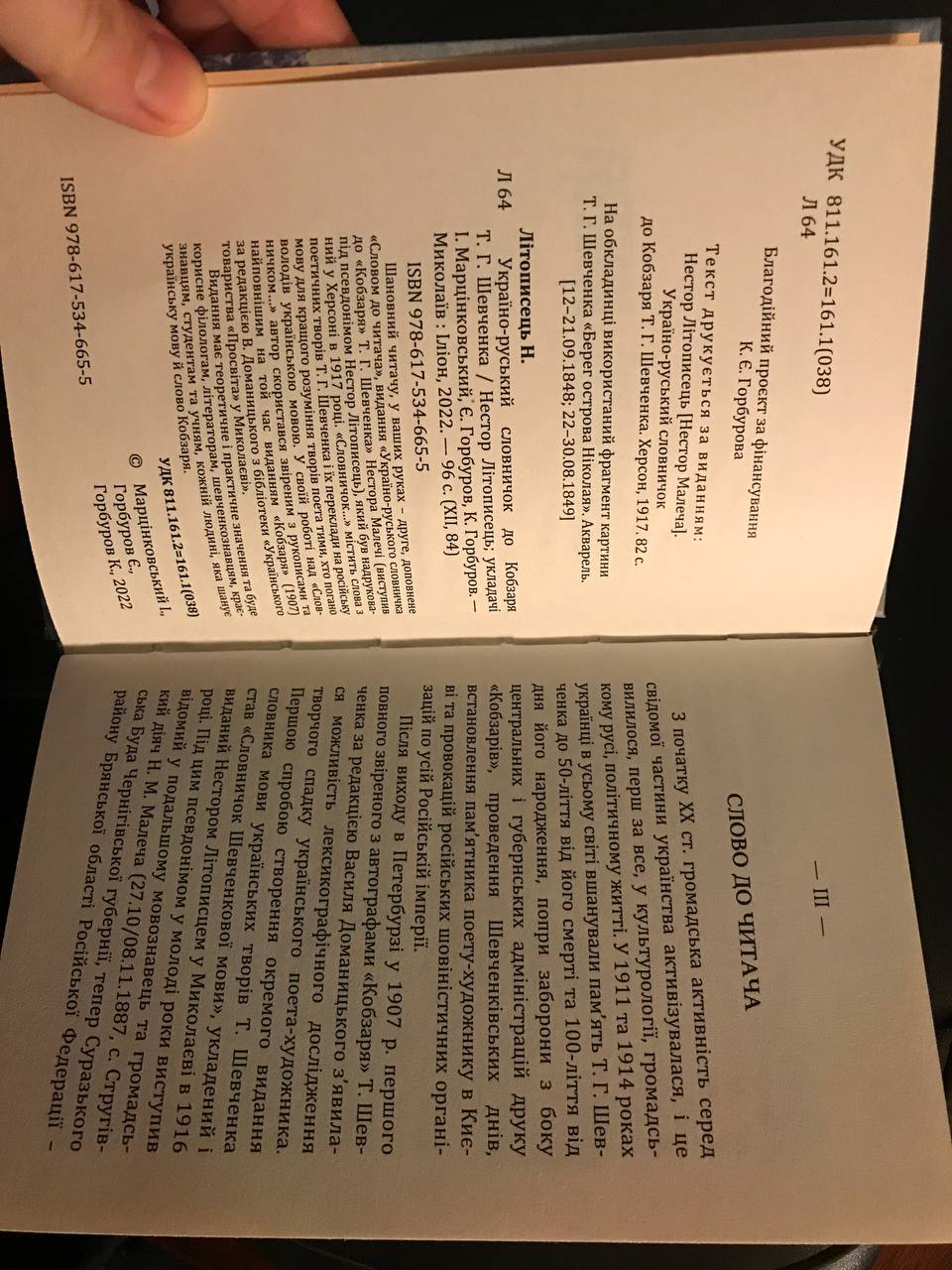 Від укладачів другого видання та ініціаторів цієї просвітницької роботи Євгена Горбурова та Ігора Марцінковського присутні дізнались, що вперше «Словничок» надрукували невеликим тиражем у 1917 році в Херсоні. Тоді Нестор Малеча створив його для російськомовних громадян, які хотіли читати й розуміти твори Шевченка.