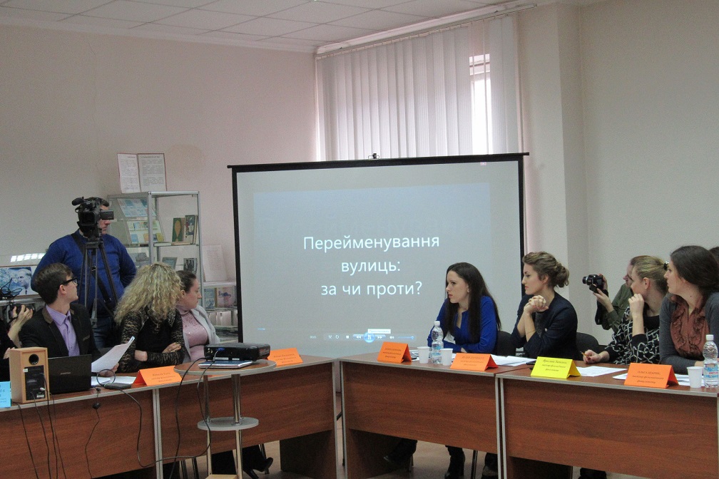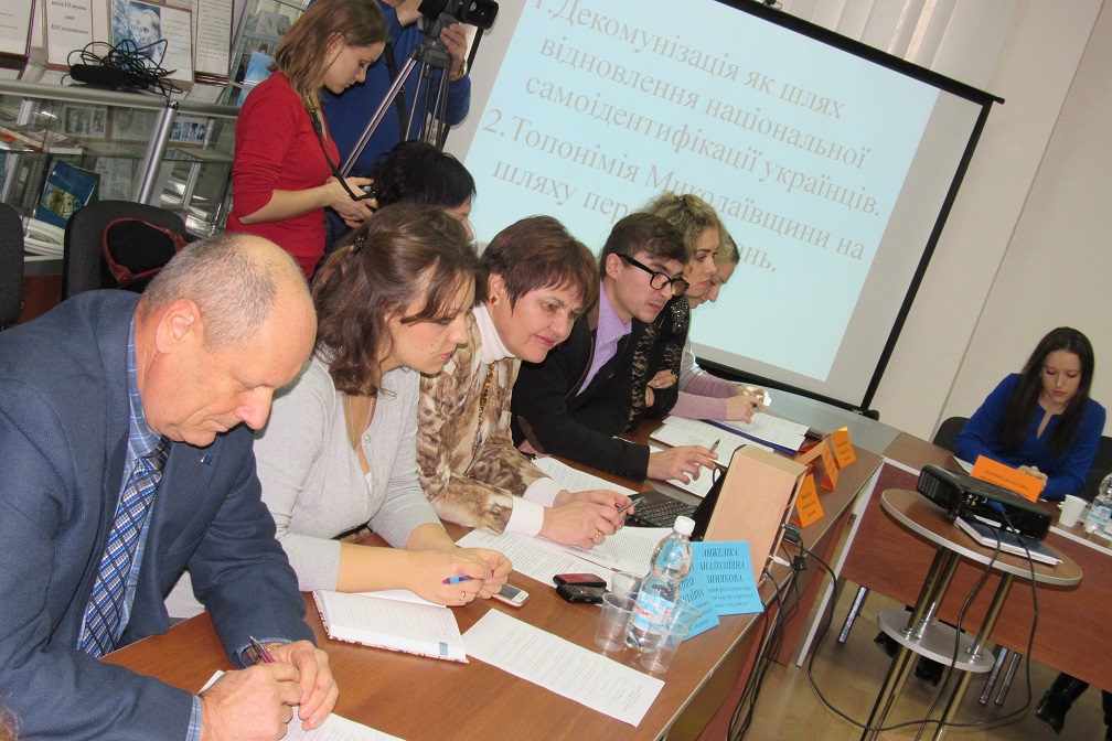 До дискусії щодо перейменування топонімів (часом гострої і бурхливої) долучилися не лише філологи, а й історики, краєзнавці, представники міської та обласної адміністрацій. Свої пропозиції висловили депутат Верховної Ради Т.Д. Кремінь, заступник мера міста Миколаєва Є. В. Шевченко, ректор університету В.Д. Будак, члени комісії з питань перейменування І.А. Бондаренко, Н.О. Кухар-Онишко, Ю.Й. Любаров, О.П. Хаєцький.