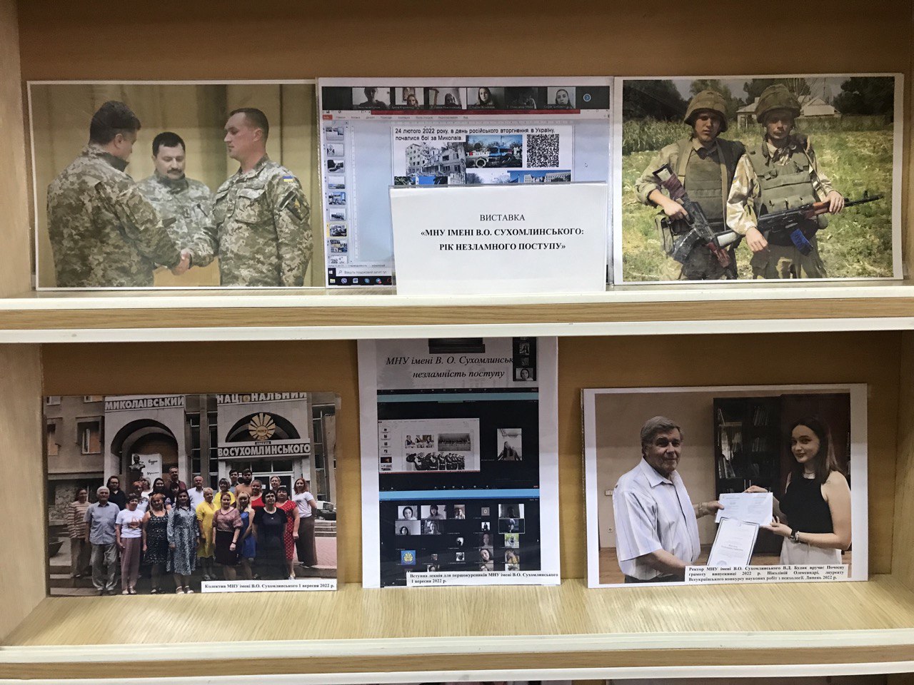 22 лютого 2023 року в музеї історії МНУ імені В. О. Сухомлинського відкрито виставку «Рік незламного поступу», приурочену до річниці початку повномасштабного російського вторгнення в Україну. Музейні експонати віддзеркалюють особливості навчальної, наукової та виховної роботи в університеті під час війни. Окремі розділи виставки присвячені викладачам, студентам та випускникам – захисникам України, учасникам волонтерського руху.