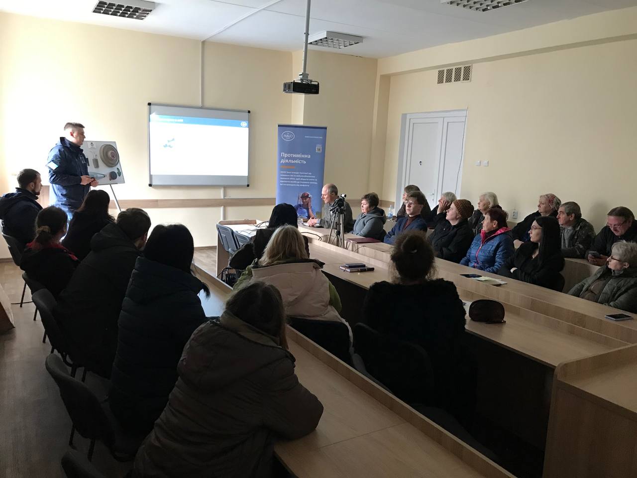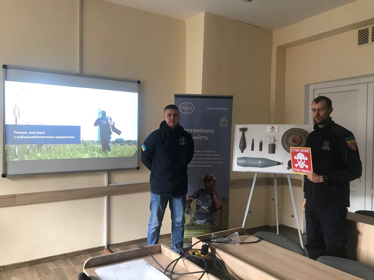 Представники організації «The HALO Trust» Дмитро Касіч та Олександр Сидько розповіли присутнім про види вибухонебезпечних предметів, про те, як уникнути контактування з ними, а також надали рекомендаційні інструкції у разі зіткнення з небезпечною знахідкою.