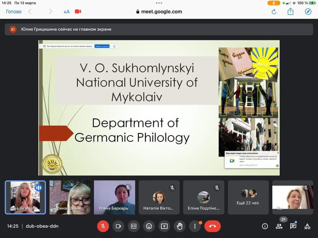 13 березня 2023 року викладачі кафедри германської філології філологічного факультету МНУ імені В. О. Сухомлинського провели зустріч зі старшокласниками Миколаївського ліцею № 60.
