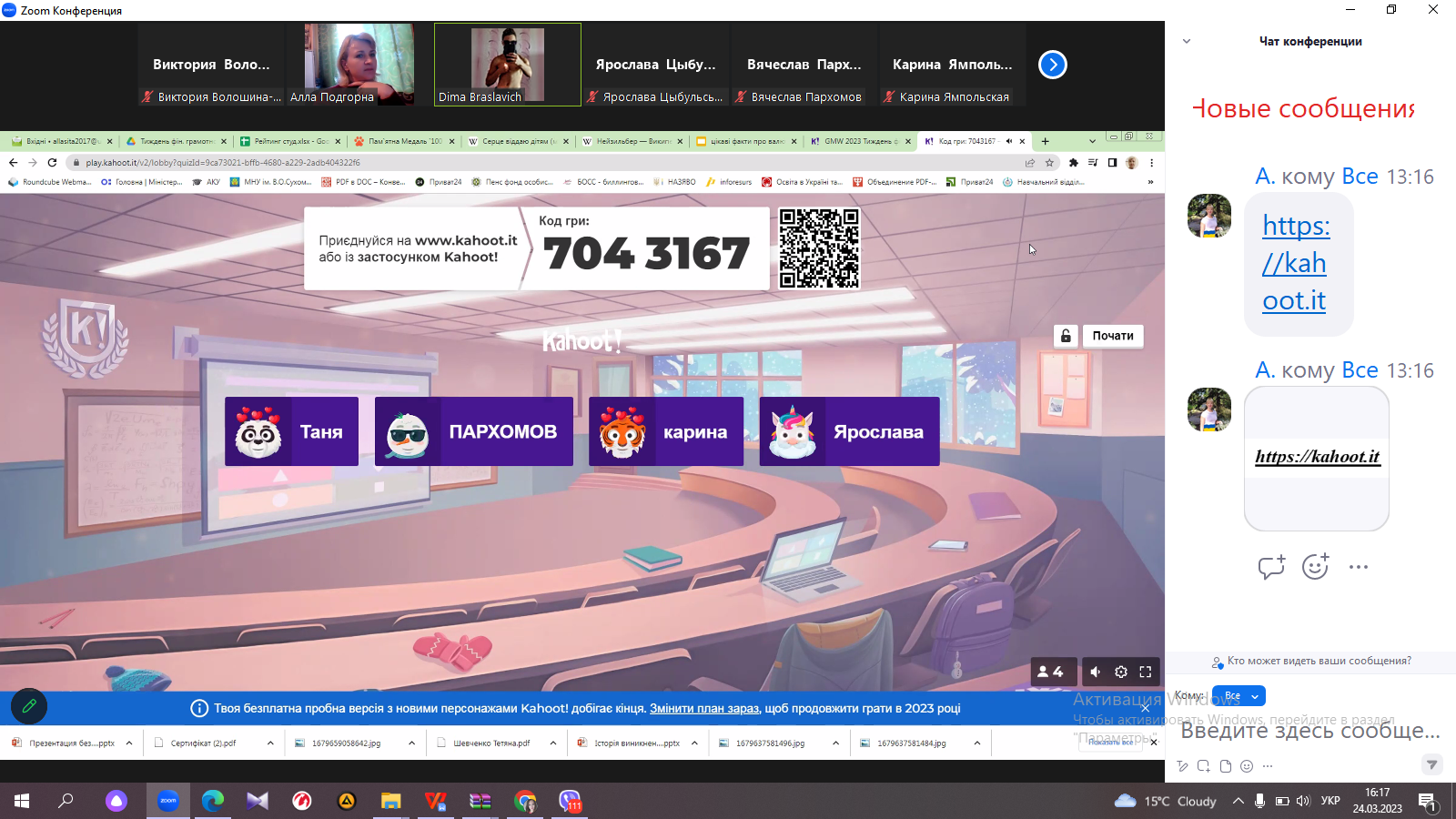 Захист конкурсних робіт та Kahoot-гра до GMW