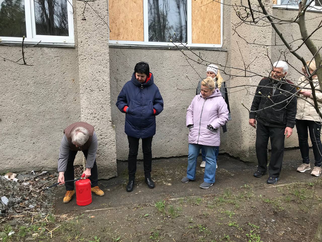 Ланка охорони громадського порядку забезпечила охорону і не допущення працівників до місця виявлення підозрілого предмету. Ланка пожежогасіння провели тренування гасіння осередків пожежі.