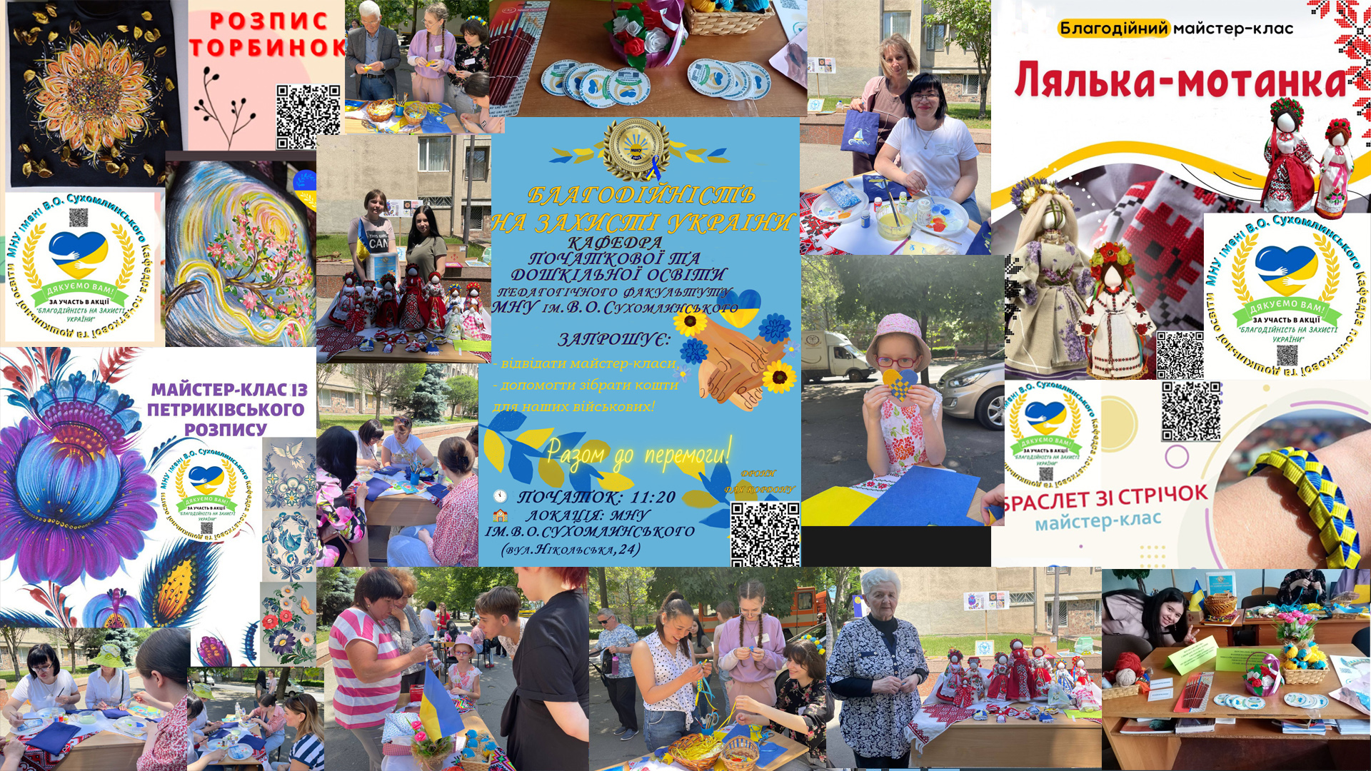 2 червня 2023 року викладачі кафедри початкової та дошкільної освіти педагогічного факультету Миколаївського національного університету імені В. О. Сухомлинського на базі Центру профорієнтаційної та виховної роботи «Євроосвіта 21 століття» за ініціативи завідувача кафедри, професора С. І. Якименко організували благодійну акції з безкоштовними майтер-класами для жителів міста, майбутніх абітурієнтів, студентів та працівників університету «Благодійність на захисті України». Таким чином вирішили приєднатися до всеукраїнського марафону «Дрони для кордону» (кампанія зі збору коштів на БПЛА для прикордонників, яка проходить за підтримки Міністерства культури та інформаційної політики та марафону #єдиніновини).